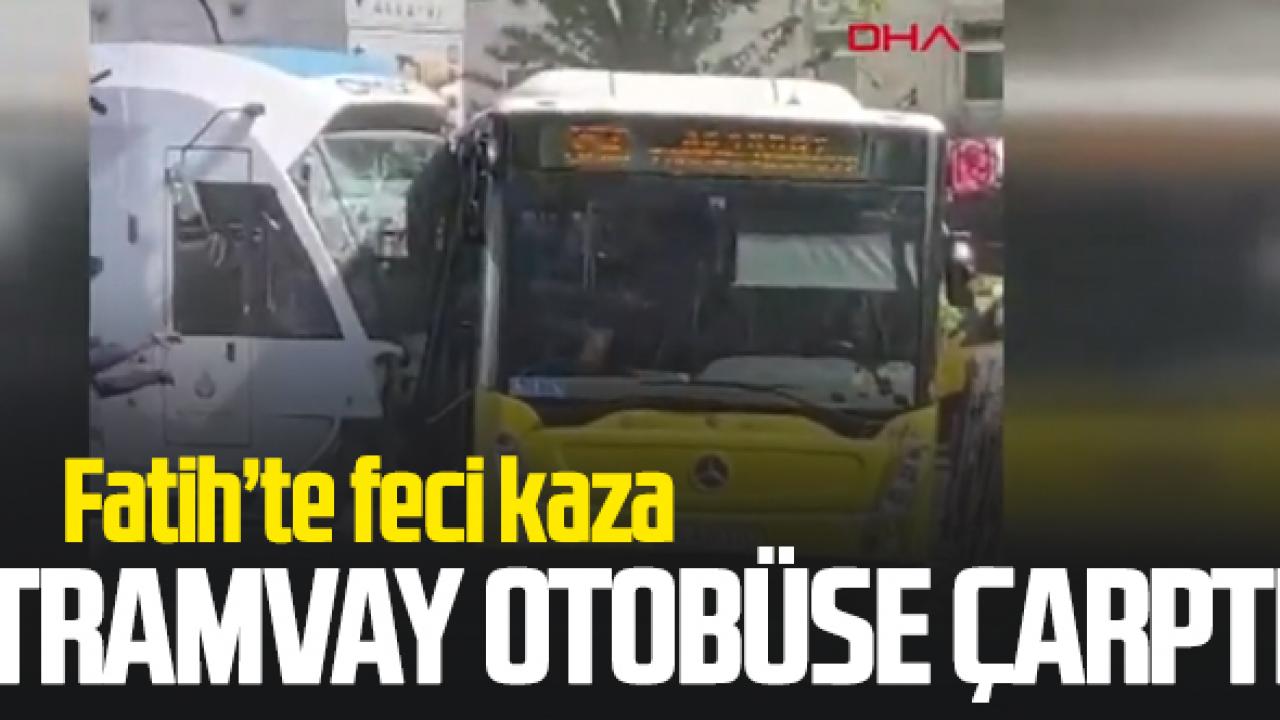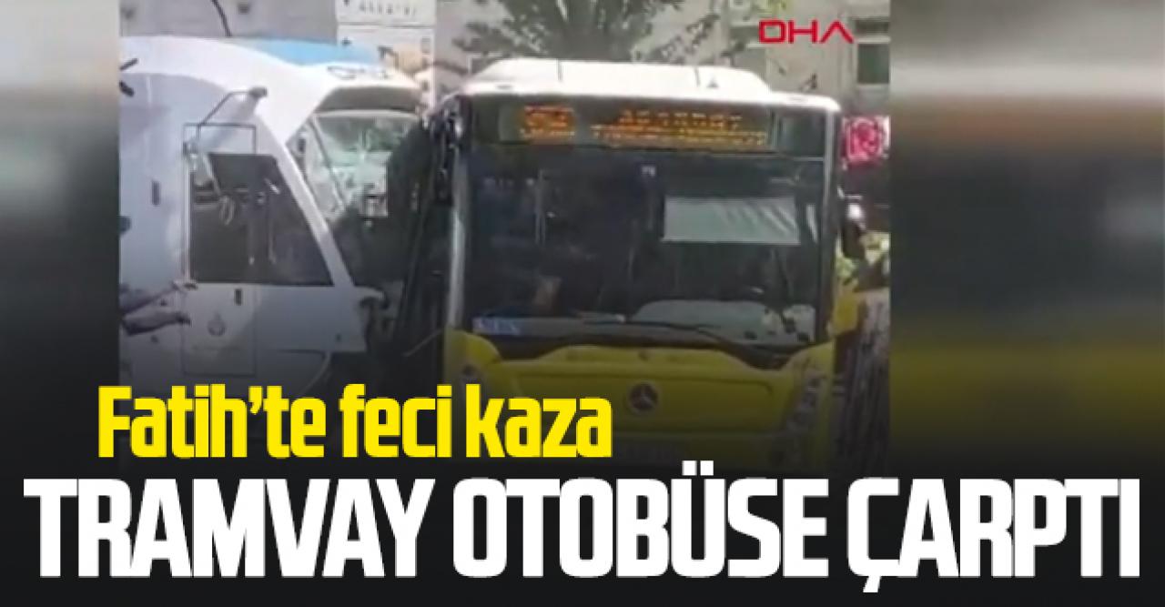 Fatih'te Haseki Durağı yakınında raylı yola giren İETT otobüsüyle tramvay çarpıştı.
