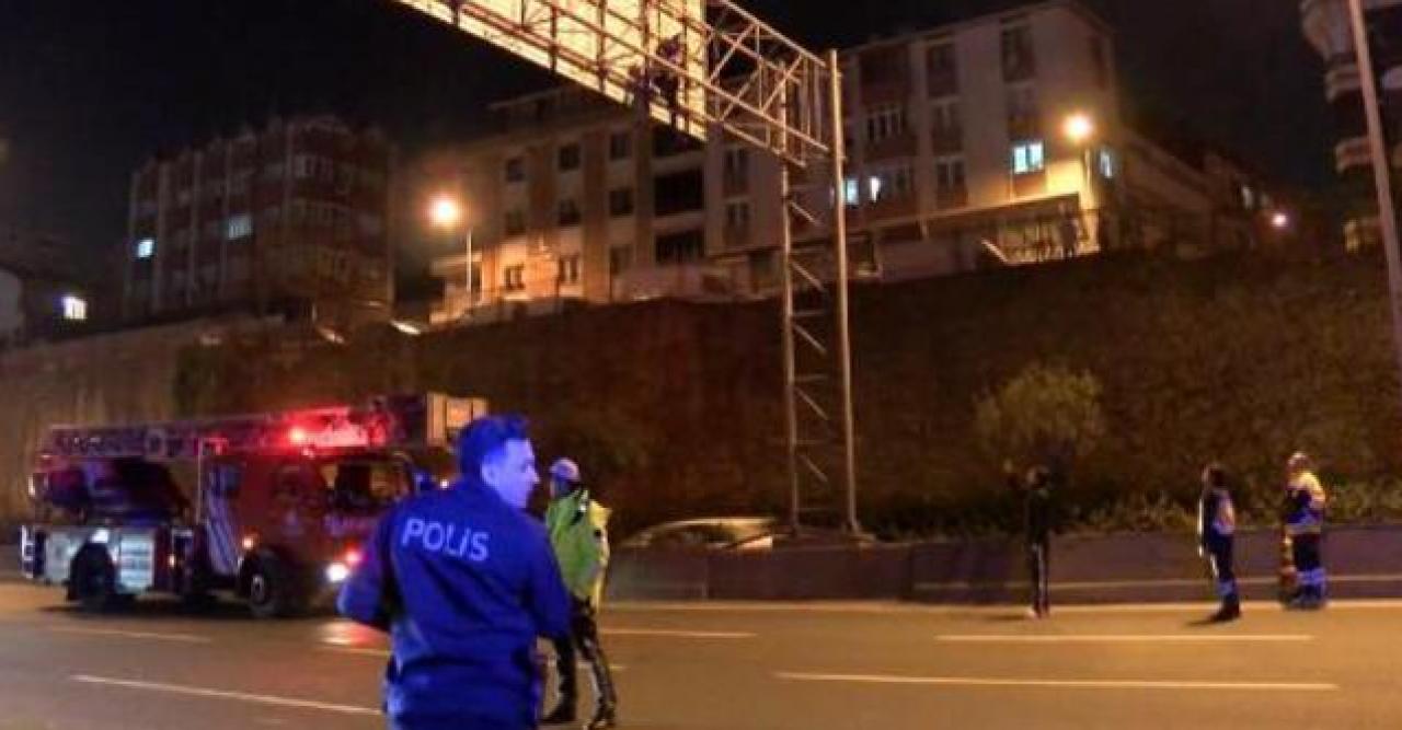Olay, gece 01.00 sıralarında Bayrampaşa ilçesi O-3 TEM bağlantı yolunda Edirne istikametinde meydana geldi. Filmlerde oynatılacağı vaadiyle 30 bin lira dolandırıldığını iddia eden kişi, trafik tabelasının üzerine çıktı. Bunu görenler durumu polise, itfaiyeye ve sağlık ekiplerine haber verdi. Kısa sürede bölgeye gelen itfaiye ekipleri, trafik levhasının üzerindeki gencin atlama ihtimaline karşı branda açtı. Polisin ve itfaiye ekiplerinin uzun uğraşları sonucu ikna edilerek itfaiye merdiveni ile indirilen kişi, ifadesi alınmak üzere emniyete götürüldü. İkna çalışmaları sırasında trafiğin kesilmesi nedeniyle uzun araç kuyruğu oluştu. Trafik olayın sona ermesi ile tekrar normale döndü.(DHA)