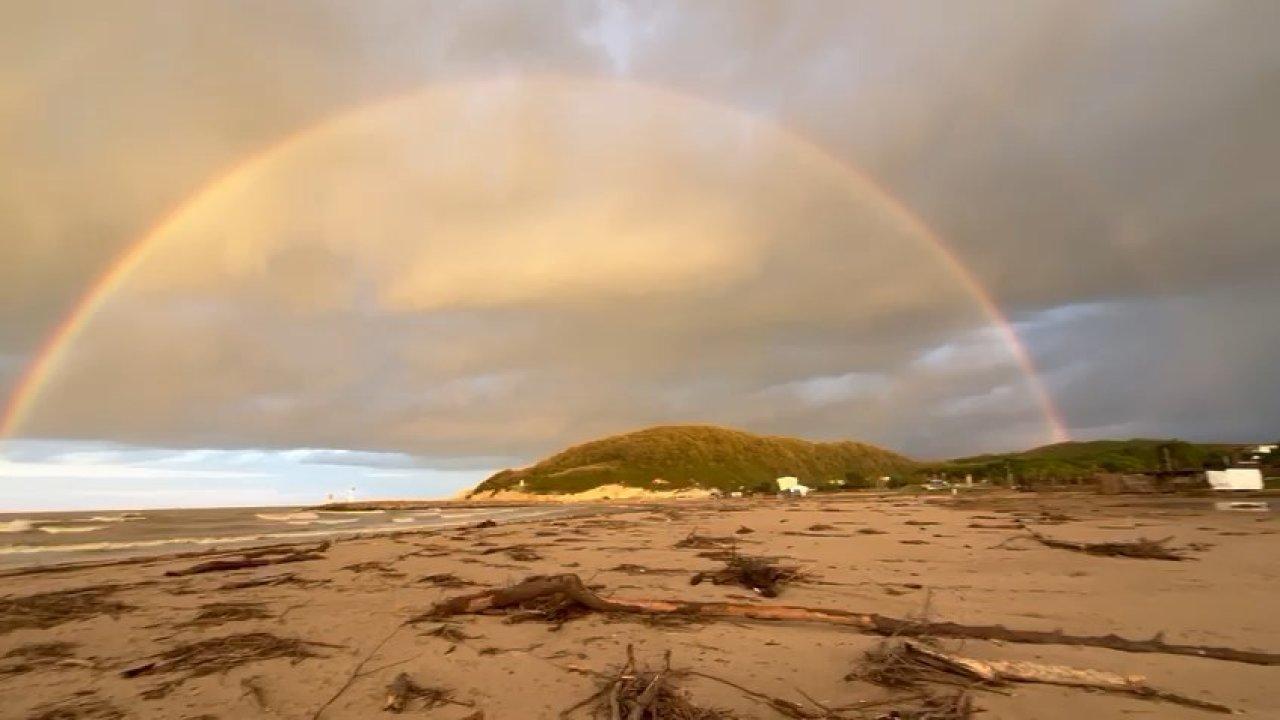 Şile Ağva'da fırtınanın yaraları sarılmaya çalışırken bugün ise gökkuşağı büyüledi.