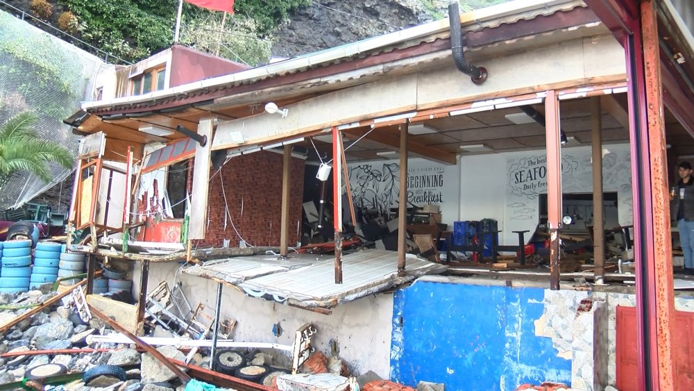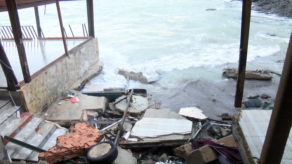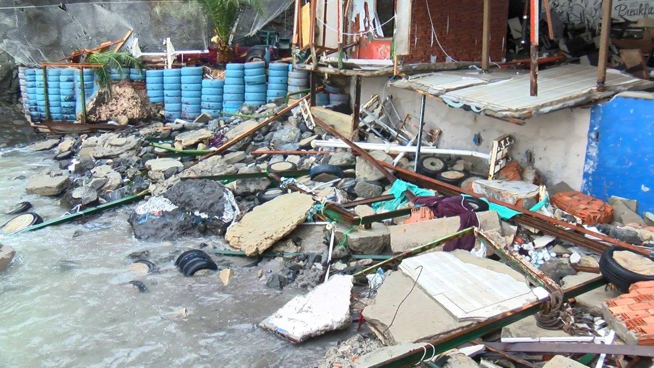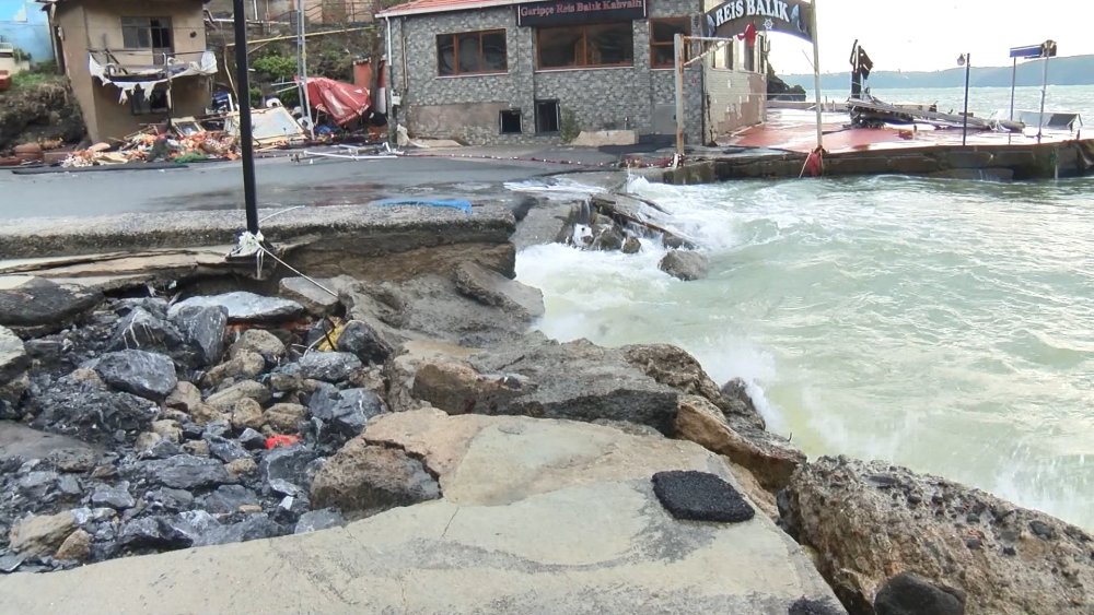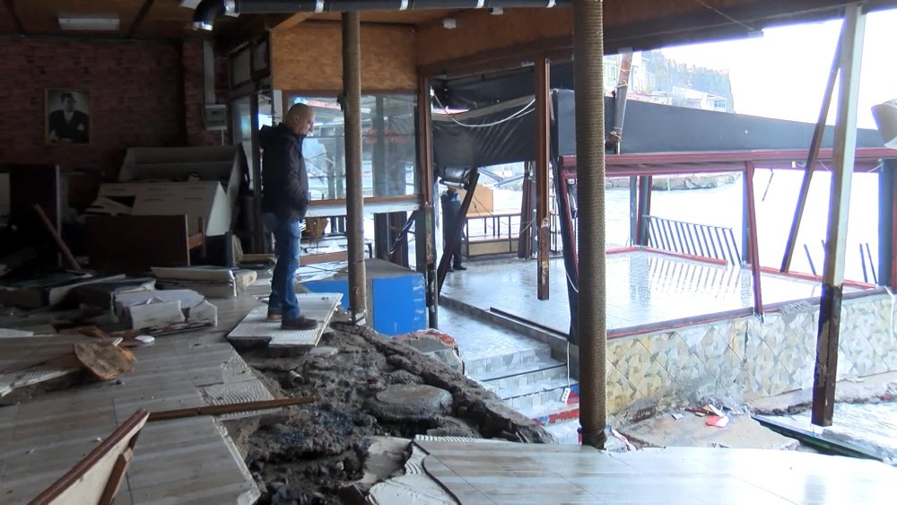 İstanbul'da Pazar günü etkili olan fırtına ve sağanak yağış nedeniyle Sarıyer Garipçe sahilindeki işyerleri zarar gördü. Deniz kenarındaki işletmelerde hasar tespit çalışmaları sürerken, zararın boyutu dalgalar çekilince ortaya çıktı.