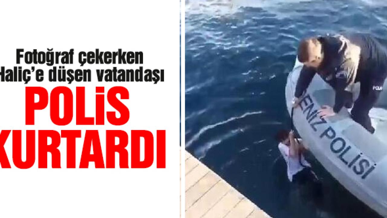 Haliç Metro Köprüsü altında fotoğraf çekmek isteyen bir vatandaş denize düştü. Olay yerine gelen deniz polisi o kişiyi kurtardı.