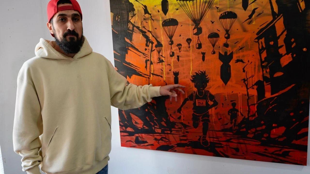 "Bu çalışmada konumuz olimpiyatlar olduğu için eserimde, 'Olimpiyatlar Fransa'da değil de Filistin’de olsaydı nasıl olurdu?' konusunu anlatmaya çalıştım. Bir an oradaki çocukların kaçışmaları, düşen bombalar canlandı. Bu tablo aslında bize şunu anlatıyor: 2040 olimpiyatlarına katılma ihtimali olan 15 bin çocuk İsrail tarafından öldürüldü. Eserin ismi: Gerçek Olimpiyatlardı (Real Olympics) Bu gerçek olimpiyatlarda bu çocuklara, yarışı kazanması durumunda sadece yaşama hakkı tanınıyor. Yani ikinci olma şansları yok çünkü ölüyorlar. Ben burada bunu anlatmak istedim."