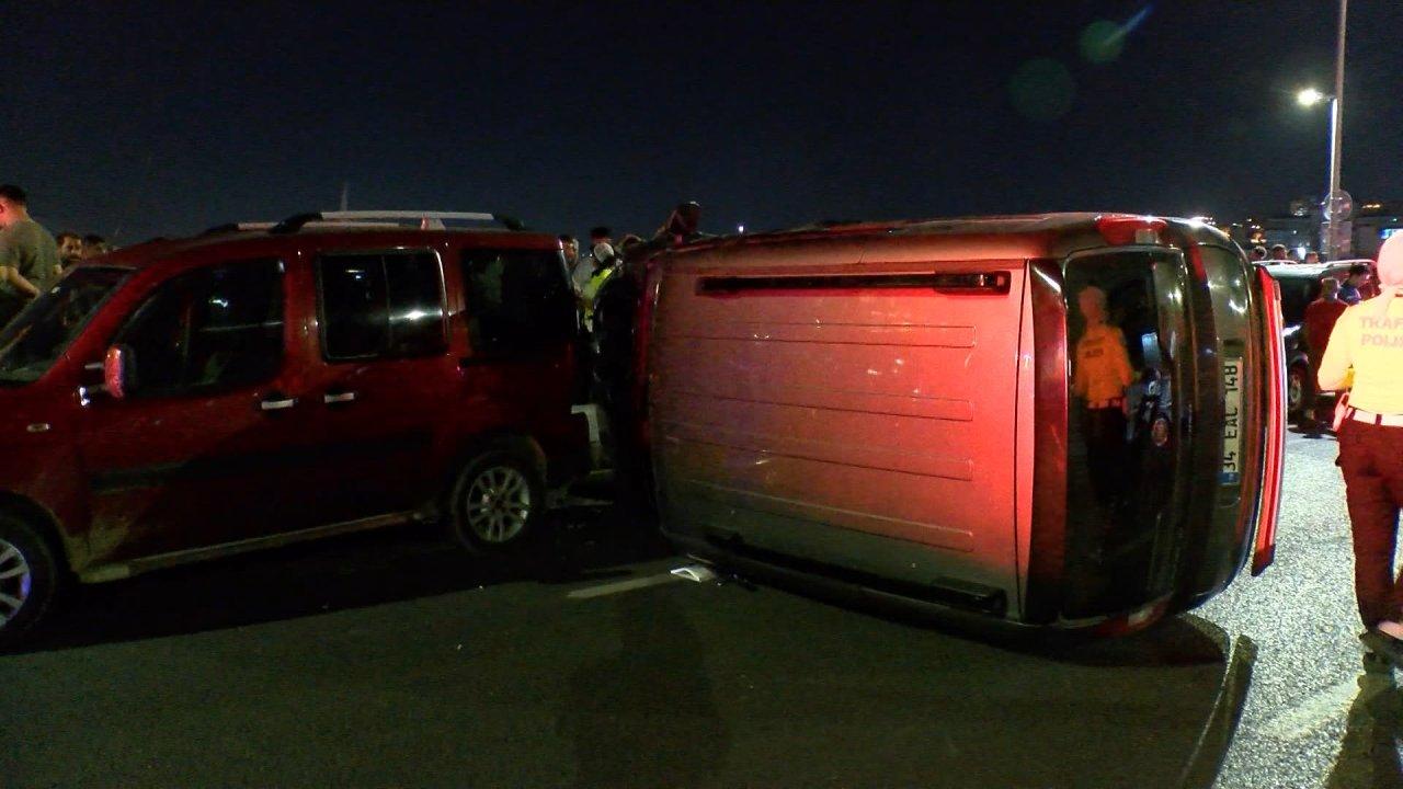 Eminönü istikametinde seyir halinde bulunan 34 EAC 148 plakalı hafif ticari araç, sürücüsünün direksiyon hakimiyetini kaybetmesi sonucu, park halindeki 2 araca çarparak devrildi. Çarpmanın şiddetiyle hafif ticari aracın içindeki 1'i kadın 2 kişi yaralandı. İhbar üzerine olay yerine polis, itfaiye ve sağlık ekipleri sevk edildi. Yaralılar olay yerindeki ilk müdahalenin ardından ambulansla hastaneye kaldırıldı. Tedaviye alınan yaralıların sağlık durumlarının iyi olduğu öğrenildi. Kazaya karışan araçların kaldırılma ve yolun temizlenmesi çalışmaları sırasında trafik akışı yaklaşık bir saat dururken, Galata Köprüsü Fatih istikametinde yoğun trafik oluştu. Hasarlı araçların çekici ile kaldırılmasının ardından trafik akışı tekrardan normale döndü. Kazayla ilgili inceleme başlatıldı.