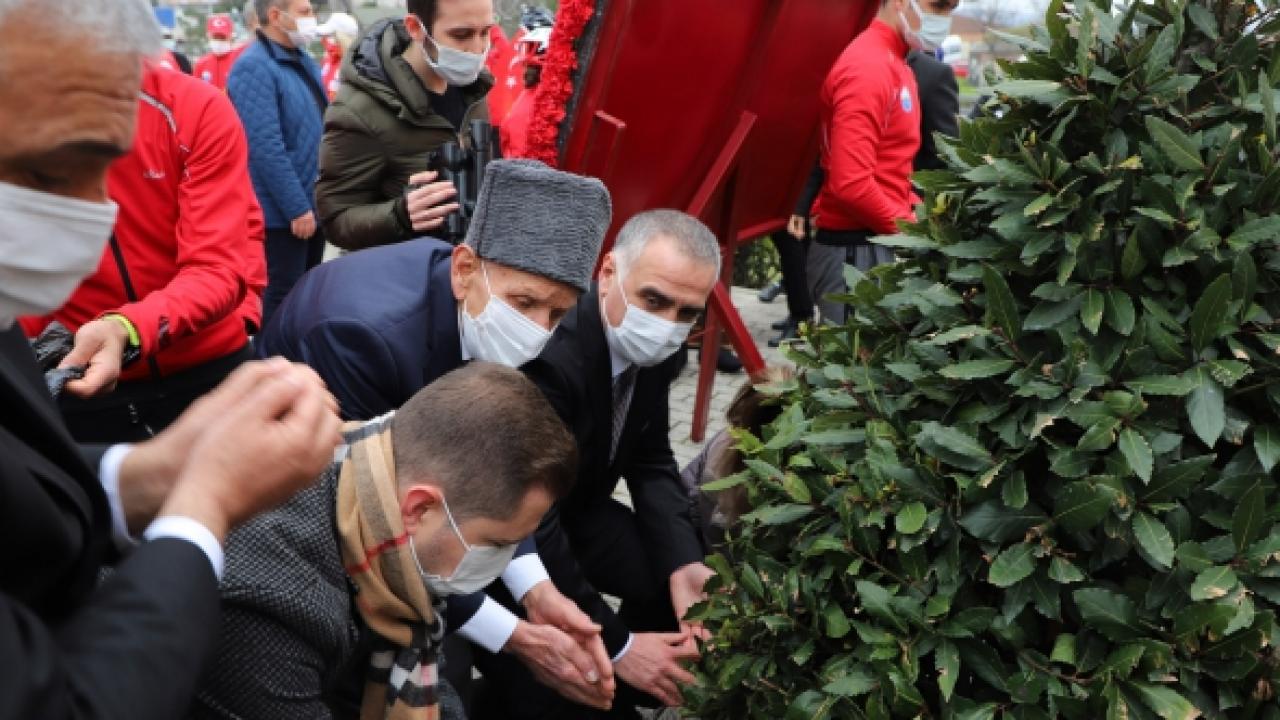 Günün anlam ve önemine yönelik yapılan konuşmaların ardından gidiş ve dönüş toplamda 660 kilometre pedal çevirerek Büyükçekmece’den Çanakkale’ye giden gençlerin karşılanmasında duygulu anlar yaşandı. Çanakkale Şehitliği’nden sırt çantalarında toprak getiren 50 bisikletçi alkışlarla karşılandı. Gençlerin Çanakkale’den getirdikleri topraklar, 100. Yıl Çanakkale Zafer Anıtı çevresinde dikilen defne ağaçlarının dibine döküldü. Törene katılan Büyükçekmeceli gazilerin, gençlerin getirdiği topraklarla ağaç dikmeleri duygulu anların yaşanmasına neden oldu.