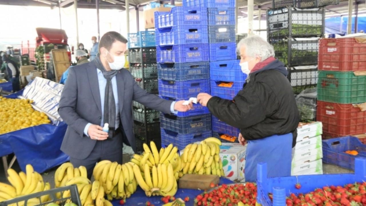 Belediye ekiplerinin gece boyu dezenfekte işlemi gerçekleştirdiğini belirten Üner, "Ekiplerimiz, sabah pazar kurulmadan önce de alanda yerlerini alarak esnafı karşılıyor. Esnaflara eldiven, dezenfektan, bone ve maske dağıtımı gerçekleştiren ekipler tezgahların da sosyal mesafeye uygun olarak kurulmasını sağlıyor. Pazar alanına giriş ve çıkış noktalarını belirleyerek kontrol altına alan ekipler bu noktalarına el dezenfektanları yerleştirerek vatandaşların kullanımına sunuyor" açıklamasını yaptı.