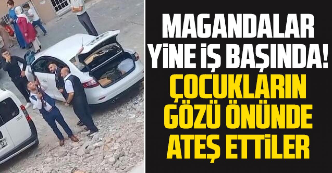 ESENLER'de gelin almak için gelen konvoyda bulunan iki kişi, çocukların bulunduğu sokakta tüfekle havaya ateş etti.