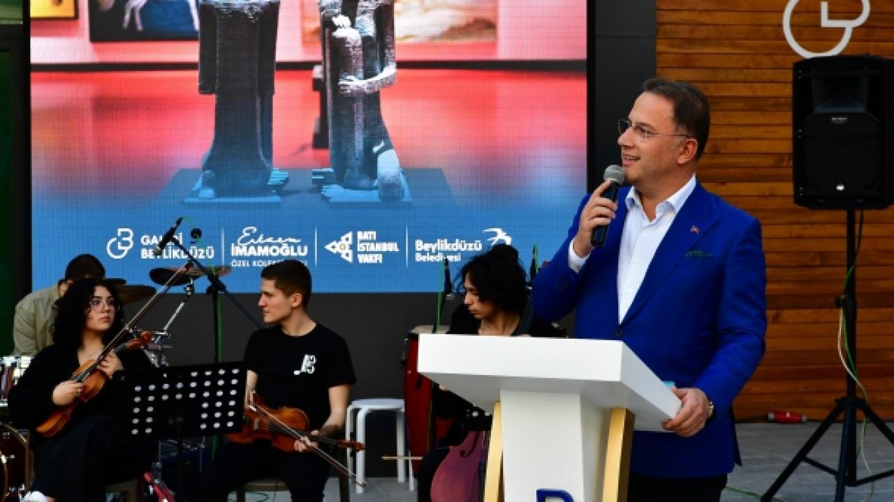 Programda konuşan Beylikdüzü Belediye Başkanı Mehmet Murat Çalık, kentin her alanında sanatı yaşamaya ve yaşatmaya devam edeceklerini vurgulayarak “Galeri Beylikdüzü açıldığı günden bu yana çok ciddi çalışmaların içerisindeydi ve sanat buluşmalarının da birincisini bugün burada kıymetli konukların huzurunda gerçekleştiriyoruz. Gazi Mustafa Kemal Atatürk’ün sanata ve sanatçıya vermiş olduğu değeri bilen bir yerel yönetim olarak burada evlatlarımızın her türlü çalışmalarında onların yanında olacağımızı söylemiştik. Bugün bu mekanın hayata geçmesinde çok büyük bir katkısı ve emeği olan İstanbul Büyükşehir Belediye Başkanımız Sayın Ekrem İmamoğlu’na gönülden teşekkür etmek istiyorum. Yıllardır sanatla ve sanatçıyla iç içe olduğunu bildiğim kıymetli dostum Sayın Ekrem İmamoğlu burayı kendi evim dediği, nefes aldığım yer diye tarif ettiği Beylikdüzü’ne emanet etti. Biz istiyoruz ki çocuklarımız kendi yaratıcılıklarının farkına varsınlar ve kendilerine güvensinler. Ülkenin geleceği sanata verilen değerle ortaya çıkacak. Sanata bir toplum değer verirse ülkenin geleceği de aydınlık olur. Bu kapsamda Beylikdüzü’nde sanatla iç içe bir yaşam inşa etmeye çalışıyoruz.” ifadelerinde bulundu.