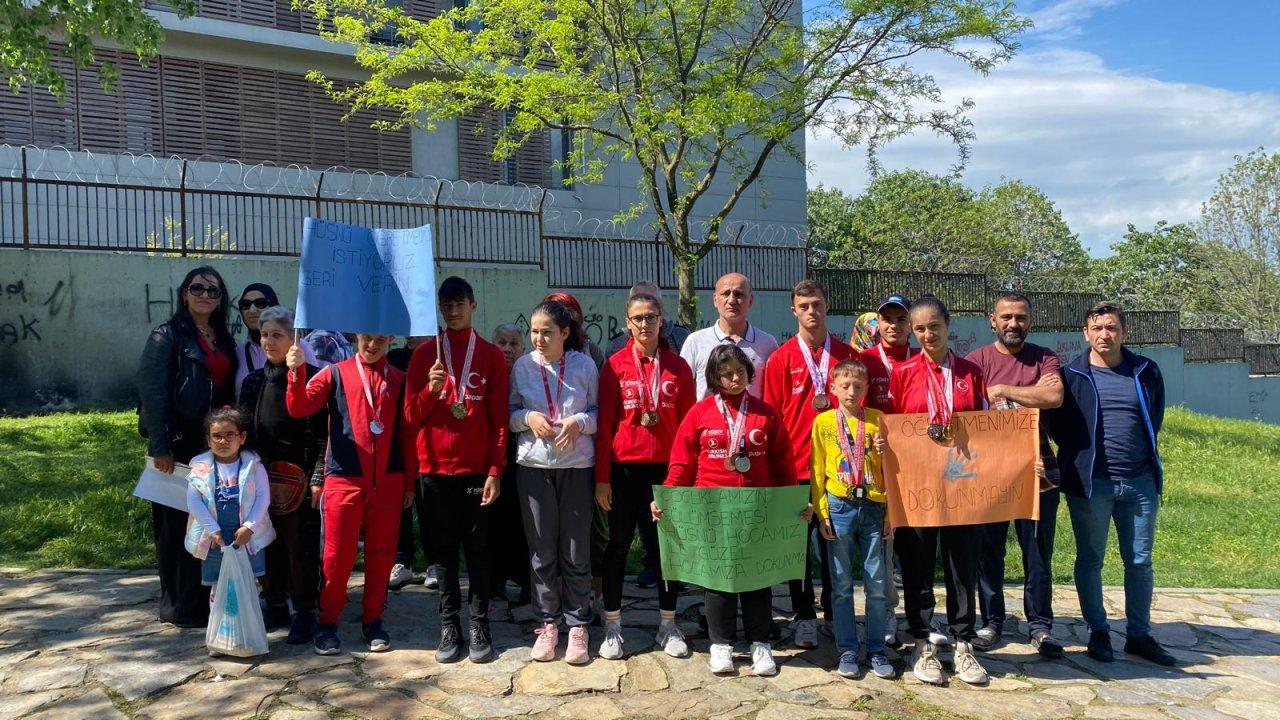 Sultangazi'deki Hacı Bektaşi Veli Özel Eğitim Meslek Okulu'nun bazı öğrenci ve velileri ile mezun olan bazı öğrencileri, başka bir okula tayin edilen beden eğitimi öğretmeni Hüsnü Çatalkaya'nın geri getirilmesi için eylem yaptı.