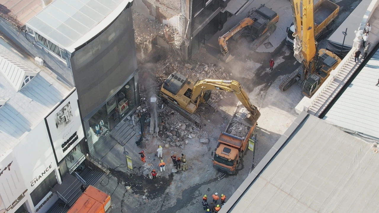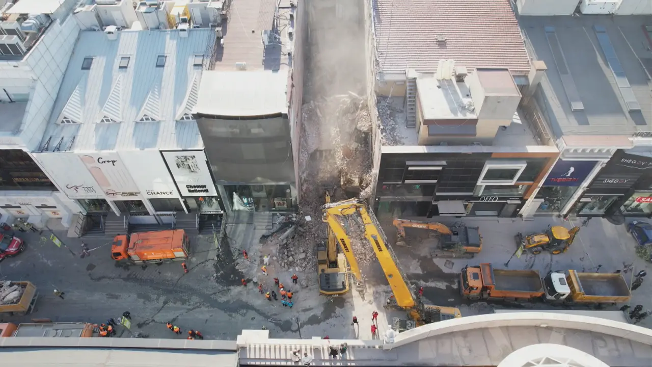 Kısmen çöken bina, sabah saatlerinde havadan görüntülendi. Görüntülerde, yıkımın kontrollü bir şekilde devam ettiği alanda çökmenin etkisi net bir şekilde görülüyor. Ekipler çalışmalarına titizlikle devam ediyor.