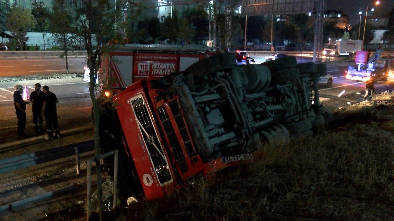 Sultangazi'de hafriyat kamyonu şoförünün direksiyon hâkimiyetini kaybetmesi üzerine karşı şeride geçerek devrildi. Kazada şans eseri ölen ya da yaralanan olmazken, trafik bir süre aksadı.