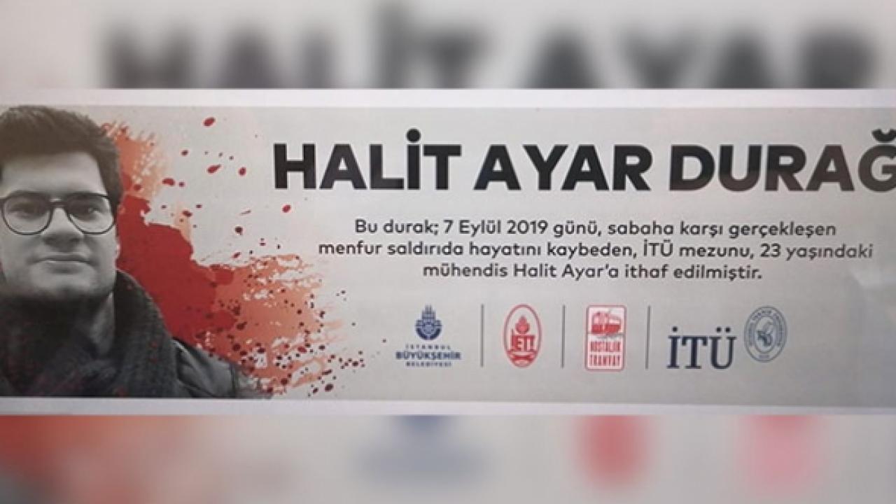 Geçtiğimiz yıl 7 Eylül'de İstanbul Teknik Üniversitesi mezunu 23 yaşındaki genç mühendis Halit Ayar, İstiklal Caddesi'nde arkadaşları ile birlikteyken bıçaklanarak hayatını kaybetmişti. İTÜ'lü genç Ayar'ın adı olayın meydana geldiği Taksim İstiklal Caddesi Tünel tramvay durağına verilecek. 'Halit Ayar Durağı' olarak değiştirilecek olan durak tabelasına "Bu durak 7 Eylül 2019 günü sabaha karşı gerçekleşen menfur saldırıda hayatını kaybeden İTÜ mezunu 23 yaşındaki mühendis Halit Ayar'a ithaf edilmiştir" yazıldığı görüldü. Tabelanın ilerleyen günlerde asılacağı öğrenildi.