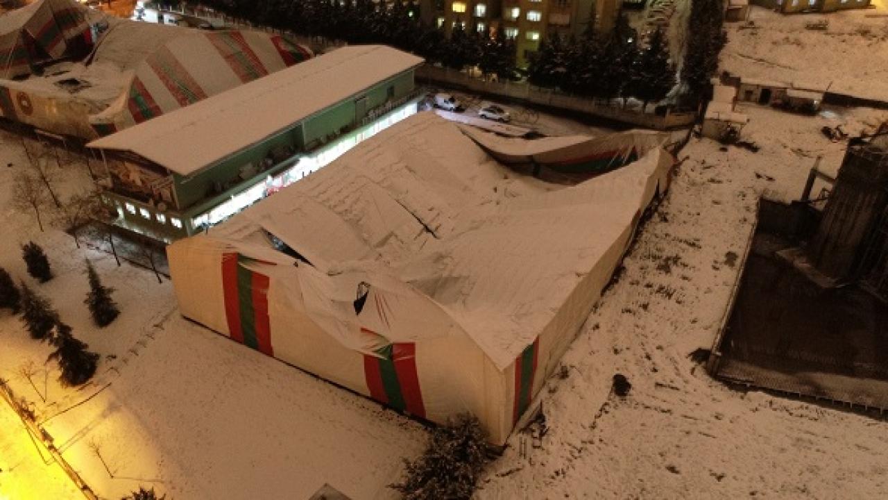 Cumartesi akşamından bu yana İstanbul’da etkili olan kar yağışı nedeniyle Halkalı'da bulunan halı sahanın çatısı çöktü. Şans eseri kimsenin olmadığı sırada çöken çatı tamamen kullanılamaz hale geldi.