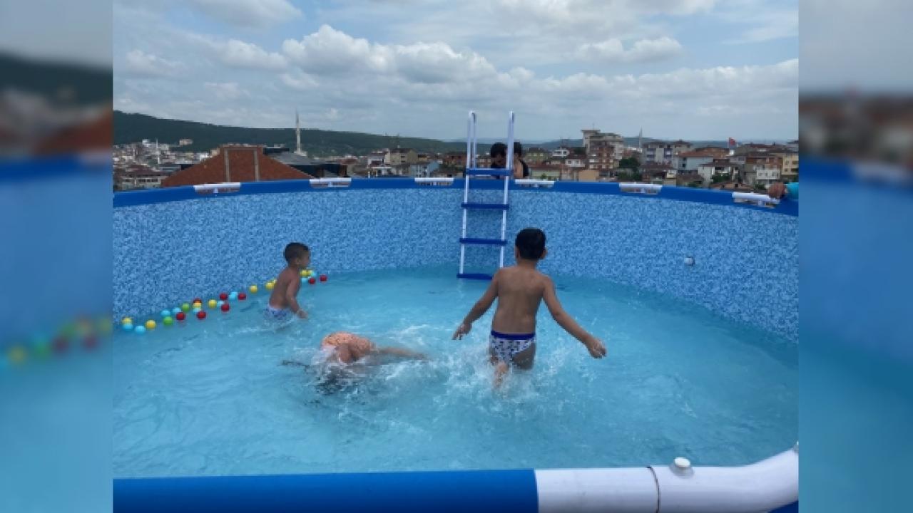 Sultanbeyli'de koronavirüs salgını nedeniyle torunlarının dışarıya çıkmasını istemeyen bir dede, sahibi olduğu binanın çatısına portatif bir havuz kurdu. Çocuklar, 16 ton su kapasiteli havuzda doyasıya eğlendi. Sıcaktan bunalan çocukların havuzdaki keyifli halleri havadan da görüntülendi