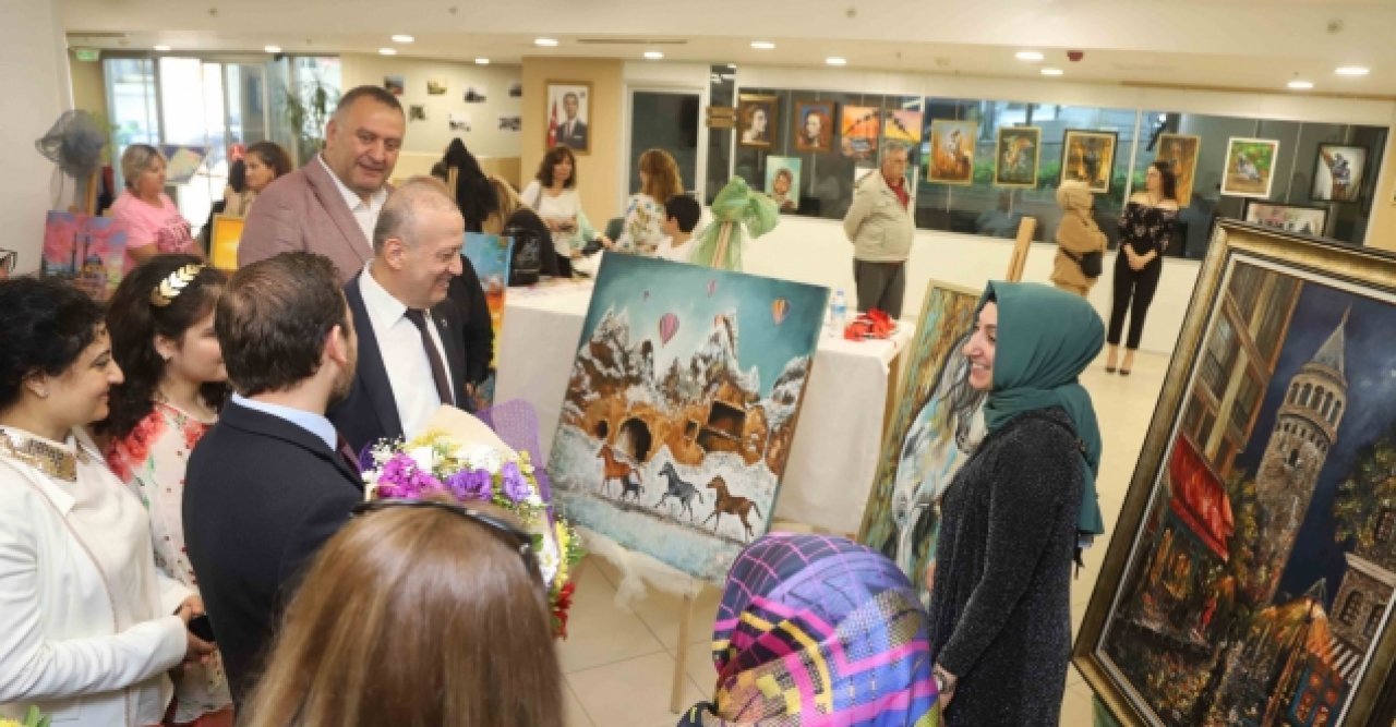 Eğitmen Selim Kalay rehberliğinde uzun bir süredir eğitim gören kursiyerlerin yaptığı tablolardan oluşan resim sergisi sanatseverlerin beğenisini kazandı. 60’dan fazla yağlı boya tablonun yer aldığı sergideki eserlerin pandemi döneminde yapılan eserleri de içerdiğini kaydeden eğitmen Selim Kalay, Kaymakam Demir ve sergiyi gezenlere eserlerle ilgili tek tek bilgi verdi. Doğa, manzara, at figürleri, Kapadokya, perspektif ve daha pek çok farklı konuda eserlerin yer aldığı sergi sanatseverlerden tam not aldı. 25’den fazla kursiyerin emeğinin ürünü sergi 17 Haziran Cuma gününe kadar açık kalacak.