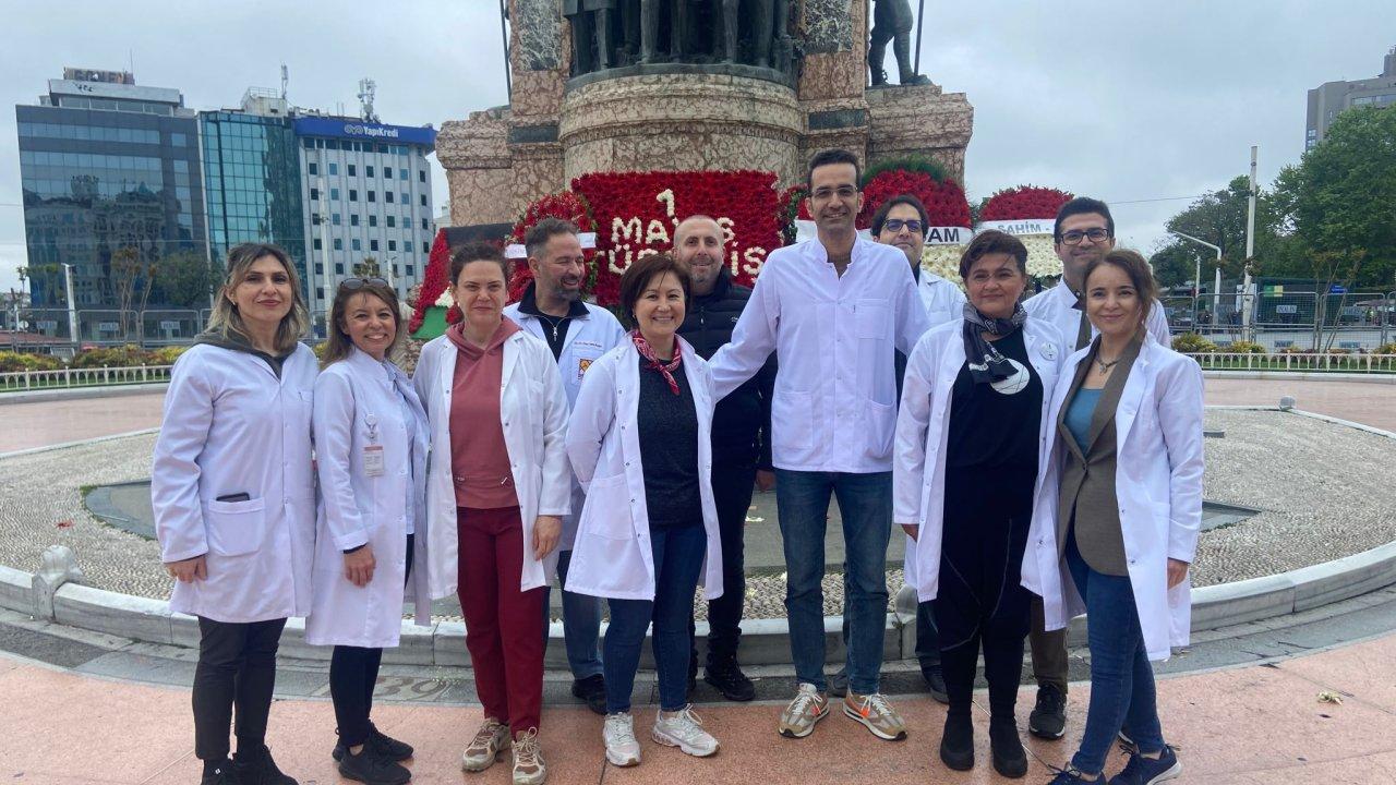 Hekim Birliği Sendikası İstanbul Şubesi Başkanı Janat Düzgün ve yönetim kurulu üyeleri 1 Mayıs Emek ve Dayanışma Günü dolayısıyla Taksim Cumhuriyet Anıtı'na çelenk bıraktı.
