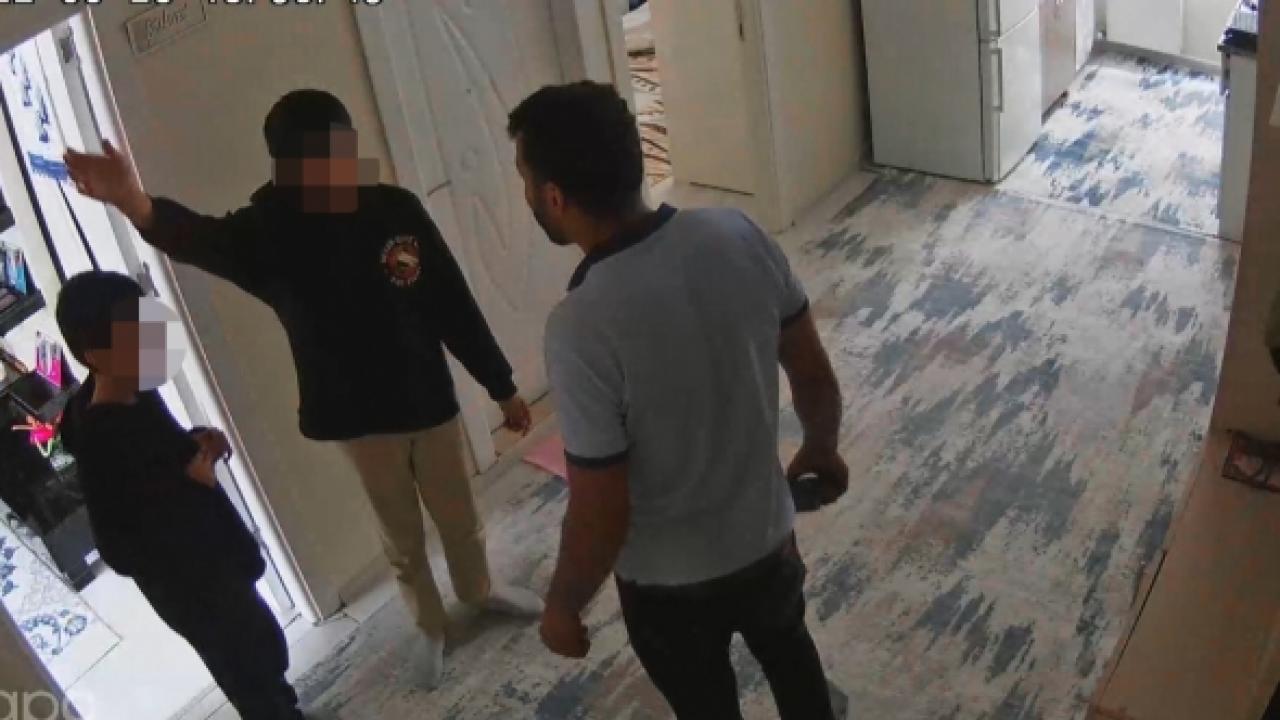 Bunun üzerine geçen hafta cuma günü işe gitmediğini belirten Yıldız, "Evde tek başıma beklemeye başladım. Gün içerisinde elektrik kesintisi yaşandı. Kapının deliğinden baktığımda; alt komşum olan kişinin iki çocuğu, bizim dairenin kapısının üst ve alt kilidini açtılar. Ondan sonra içeri girdiler. Bunlar içeri girerken ben kapıyı kapattım. O ara binanın sigortalarını indirdikleri için kamera kaydı yapılmadı. Bunları yakaladım, benim daireme ait kapının iki tane anahtarının yedeğini çıkarmışlar. Ellerinden anahtarları aldım. Durumu polise bildirdim, o sırada babaları da geldi. Bunlar o sırada eve girdiklerini ve hırsızlık yaptıklarını itiraf ettiler. Karakolda ise bize yaptırdılar demişler. Karakolda ifade verdim. Ben eve geldiğimde çocuklar benden önce evlerine gelmişti" şeklinde konuştu.