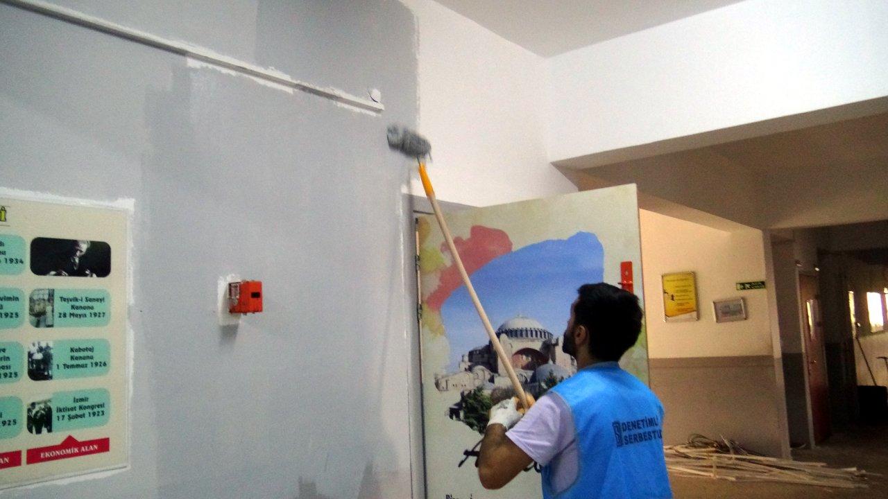 Avcılar Mehmet İlkokulu'ndaki çalışmalarına devam hükümlüler ise sınıfları boyadı. Hükümlü, Tuncay Alver ise, "Topluma faydalı olmamızı sağlıyor. Usta arkadaşlar acemi arkadaşlara bu işi öğretiyor" dedi.
