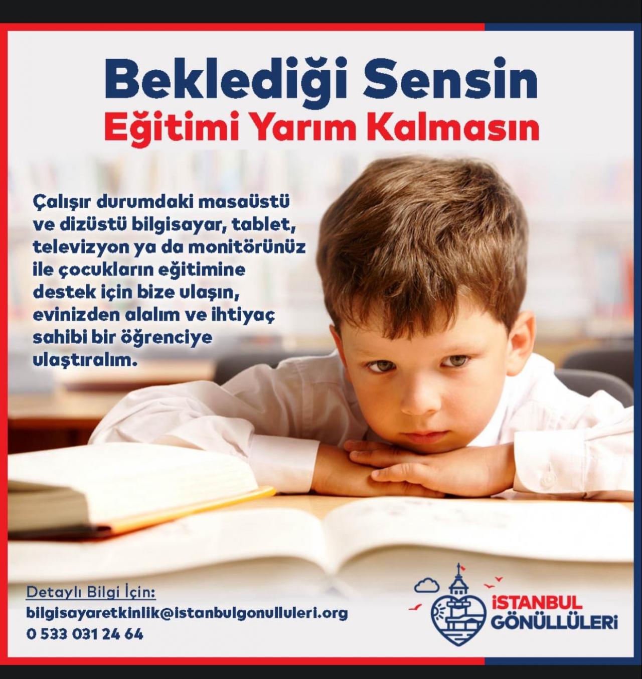 İBB bünyesinde kent gönüllüleri olarak faaliyet gösteren İBB Gönüllüleri, bilgisayar ya da internet bağlantısı olmayan İstanbullu ailelere yardımcı olmayı hedefliyor. Bu kapsamda, ‘Eğitimi Yarım Kalmasın’ projesi başlatan İBB Gönüllüleri, atıl durumdaki bilgisayarları toplayarak eğitimi devam eden ihtiyaç sahibi öğrencilere ulaştıracak.