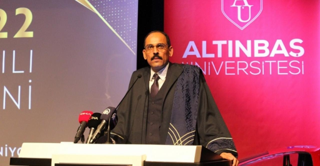 Altınbaş Üniversitesi 2021 – 2022 akademik yılı resmi açılış törenine katılan Cumhurbaşkanlığı Sözcüsü İbrahim Kalın’a fahri doktora unvanı ve beraat takdim edildi. Kalın, takdim töreninin ardından akademik yılın açılış dersini de verdi. Üniversitenin Mahmutbey kampüsünde düzenlenen açılış törenine, Cumhurbaşkanlığı Sözcüsü İbrahim Kalın, Bağcılar Kaymakamı Mustafa Eldivan, Bağcılar Belediye Başkanı Lokman Çağırıcı, Mehmet Altınbaş Eğitim ve Kültür Vakfı Başkanı Vakkas Altınbaş, Rektör Prof. Dr. Çağrı Erhan, Rektör Yardımcısı Prof. Dr. Ahmet Kasım Han, dekanlar, öğretim üyeleri ve öğrenciler katıldı.