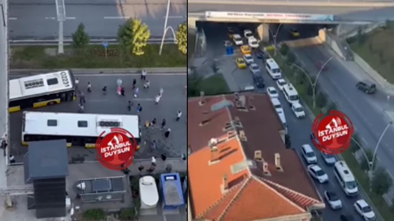 Öte yandan bir İETT otobüsü ilerlemeye çalışsa da önüne geçen vatandaşlar buna engel oldu.