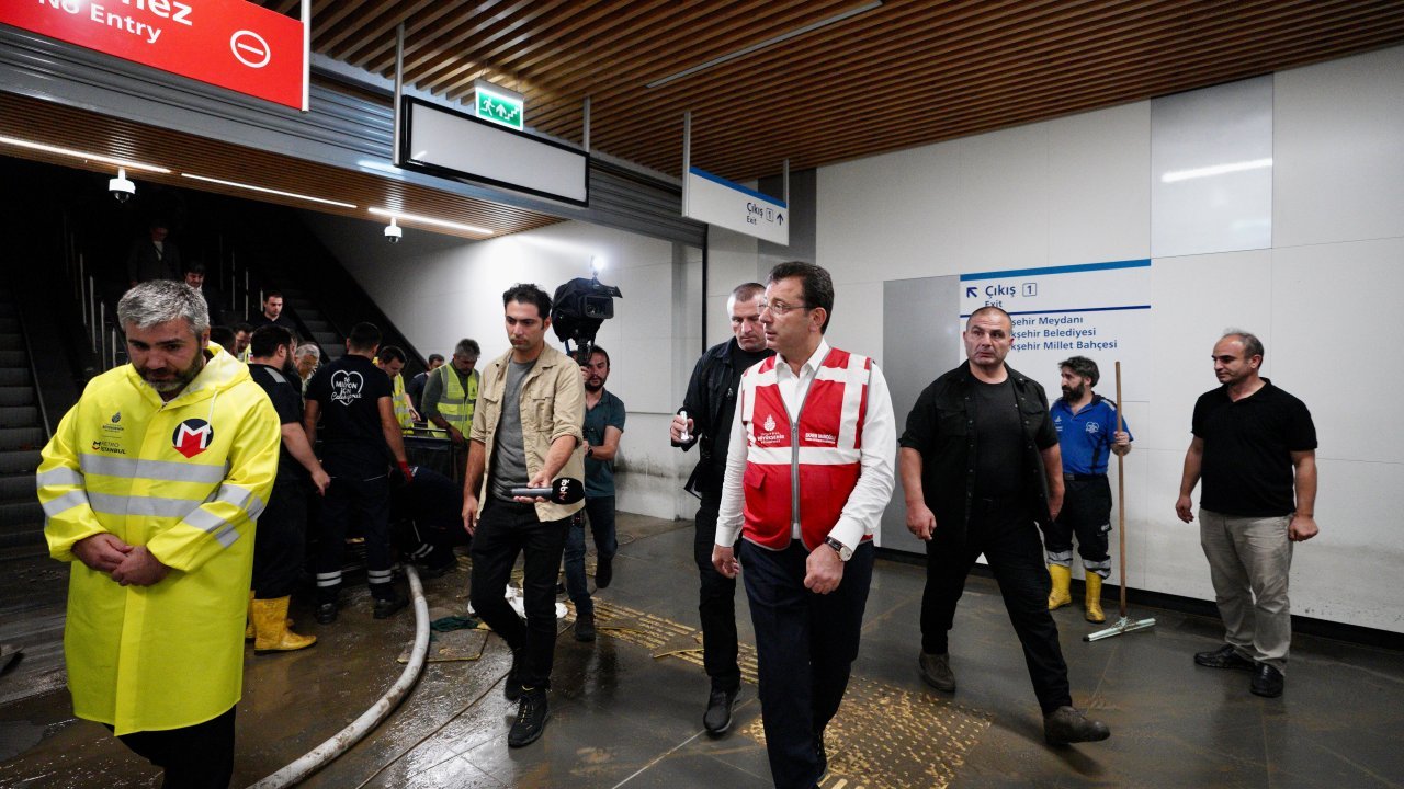 İBB Başkanı Ekrem İmamoğlu Başakşehir'de su baskını yaşanan alanlarda incelemelerde bulundu ve sahada çalışan İBB ekiplerinden bilgi aldı.
