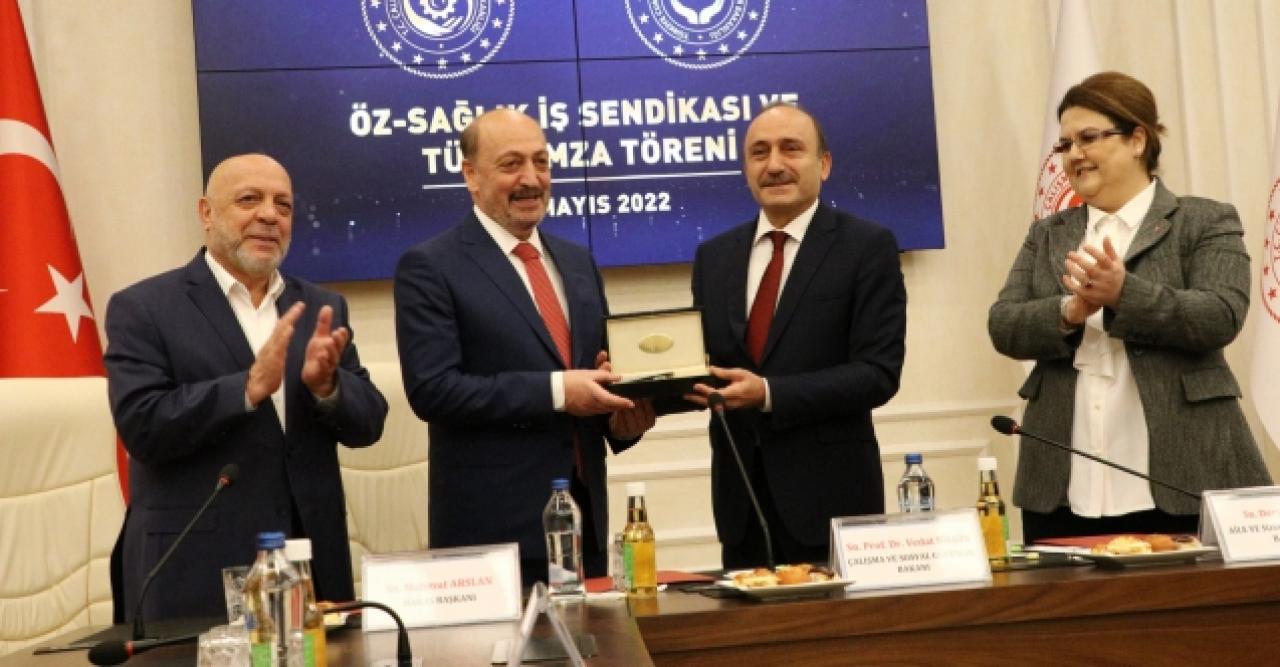 Aile ve Sosyal Hizmetler Bakanlığı ile Öz-Sağlık İş Sendikası arasındaki 5'inci Dönem Toplu İş Sözleşmesi imza törenine Bakan Derya Yanık, Çalışma ve Sosyal Güvenlik Bakanı Vedat Bilgin, Öz-Sağlık İş Sendikası Genel Başkanı Devlet Sert, HAK-İş Genel Başkanı Mahmut Arslan katıldı. Bakan Yanık, bakanlığının son 20 yılda dünya klasmanında sosyal hizmet faaliyetleri veren bir hüviyete kavuştuğunu belirterek, "85 milyona hizmet üreten bir bakanlığız. Kuşkusuz bu özveriyi beklerken arkadaşlarımızın özlük haklarını iyileştirmemiz gerektiğinin her zaman farkında olduk ve bunun için hem bakanlık olarak hem hükumetimiz olarak imkanları olabildiği kadar zorladık. Bu anlamda hem Türk Ağır Sanayi ve Hizmet Sektörü Kamu İşverenleri Sendikası (TÜHİS) hem Çalışma ve Sosyal Güvenlik Bakanlığımız olarak çalışan arkadaşlarımıza sağlayabileceğiniz imkanları maksimum ölçüde onların lehine olmak üzere değerlendirdik. Biz hep aynı saftayız, biz hep aynı düzlemdeyiz. Biz Türkiye Cumhuriyeti vatandaşlarının çalışan, emekçi, hizmet alan, hizmet veren tarafları olarak hepimizin eşit, adil, refah düzeyinden faydalanan, payına düşeni alan vatandaşlar olması için uğraşıyoruz. Hükümetlerimiz olarak 20 yıldır bunun için aralıksız çalışıyoruz" dedi.