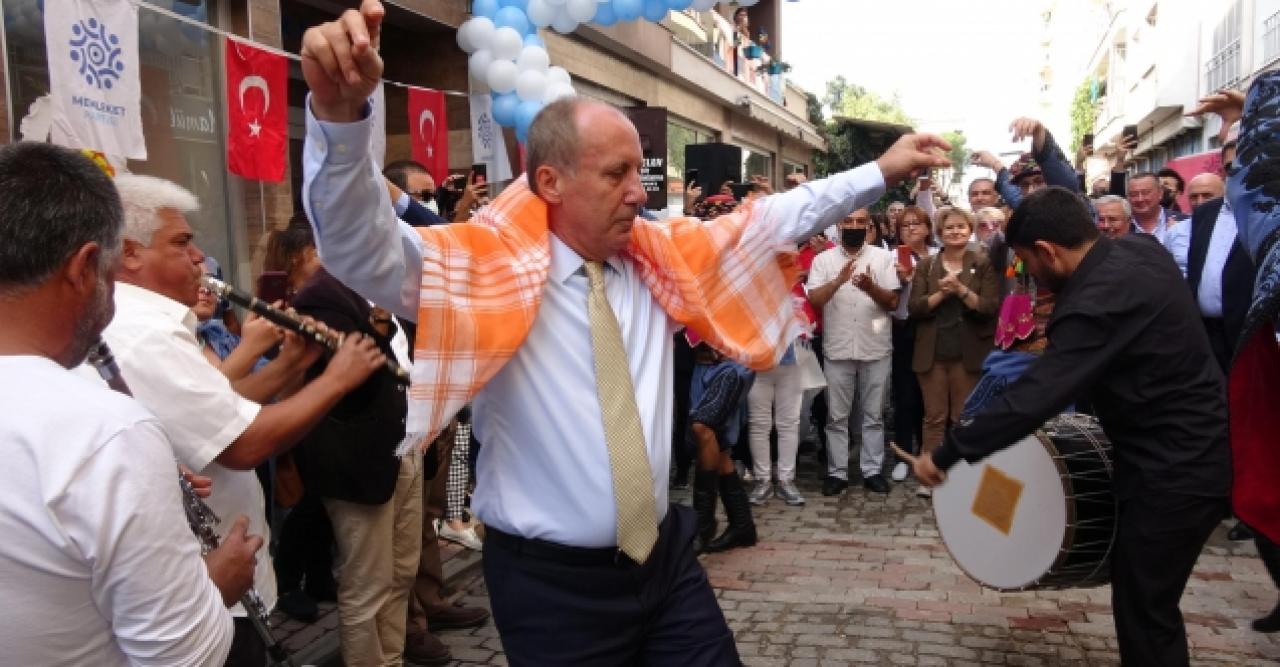 Memleket Partisi Genel Başkanı Muharrem İnce, Aydın'daki ilçe gezileri kapsamında geldiği İncirliova'da, partisinin ilçe başkanlığı açılışına katıldı. Zeybek oynayan İnce, esnaf ziyaretinde bulundu