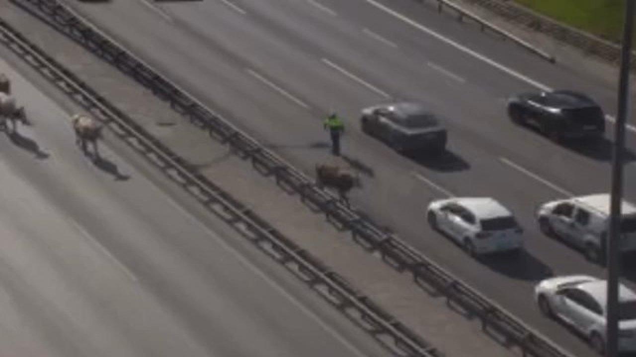 4 ineğin otoyola girmesiyle olanlar oldu. İneklerin TEM Otoyolu'na girmesi tehlikeli anlara yol açarken kaosa ihbar üzerine olay yerine gelen polis ekipleri müdahale etti. Polis ekipleri inekleri güvenli şekilde otoyoldan çıkardı.