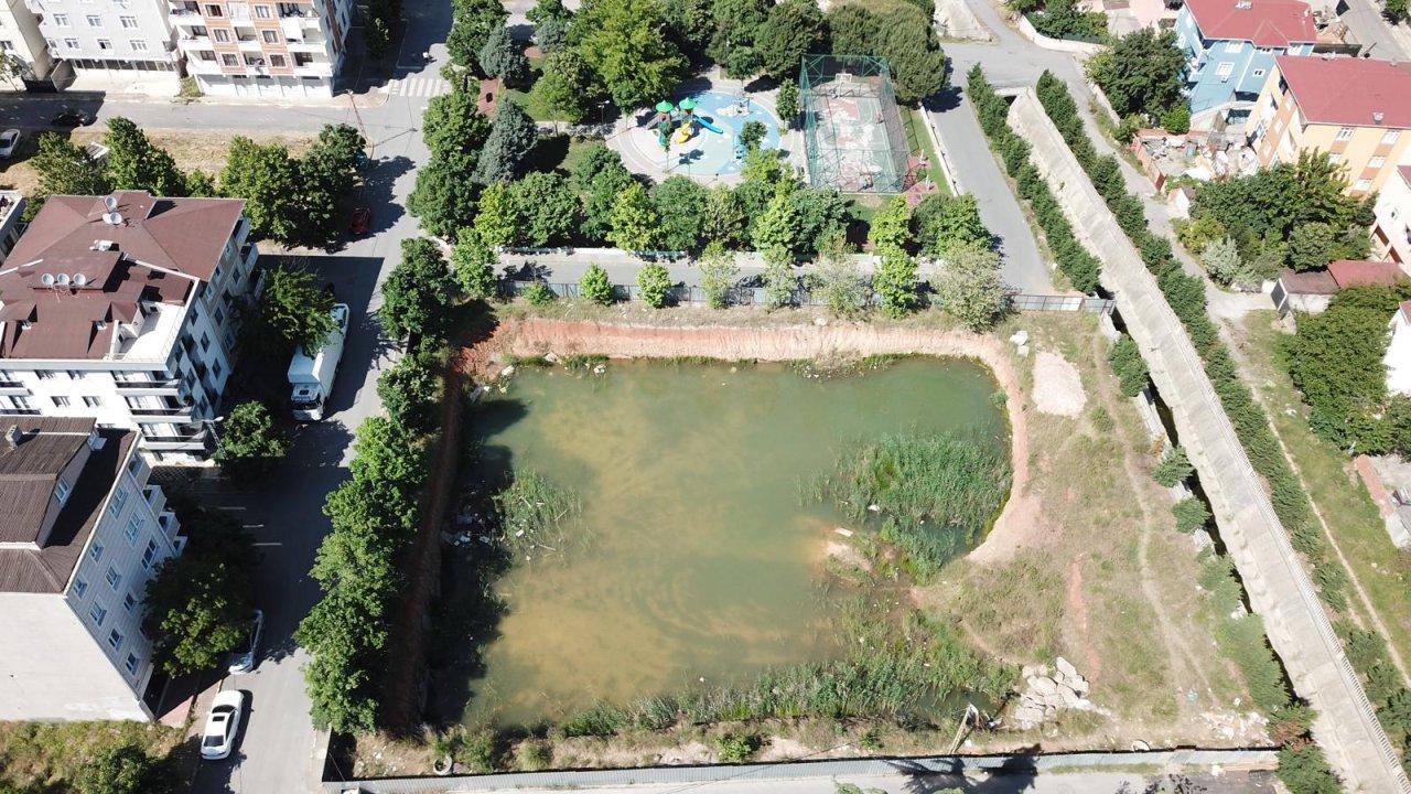 Sancaktepe'de iddiaya göre site inşaatının temeli için açılan alan toprak sahipleri ve firmanın davalık olması nedeniyle atıl kaldı. Zamanla yağmur sularının birikmesiyle adeta havuzu andıran ve tehlikeye davetiye çıkaran alanda çocukların yüzdüğü anlar cep telefonu kamerasına yansıdı.