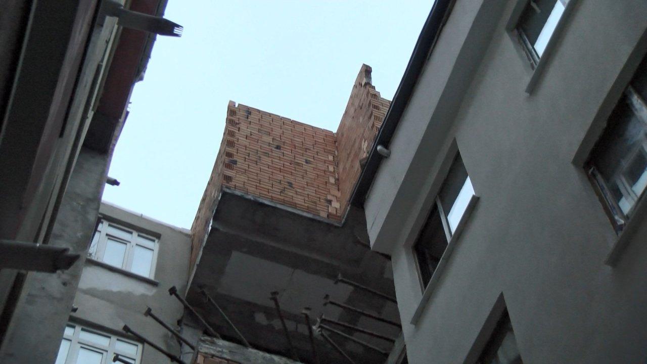 İstanbul Esenyurt'ta inşaat halindeki binadan, başka bir binanın bodrum katının balkonuna tuğlalar düştü. O sırada uykuda olan aile, deprem olduğunu sanarak korku dolu anlar yaşadı.