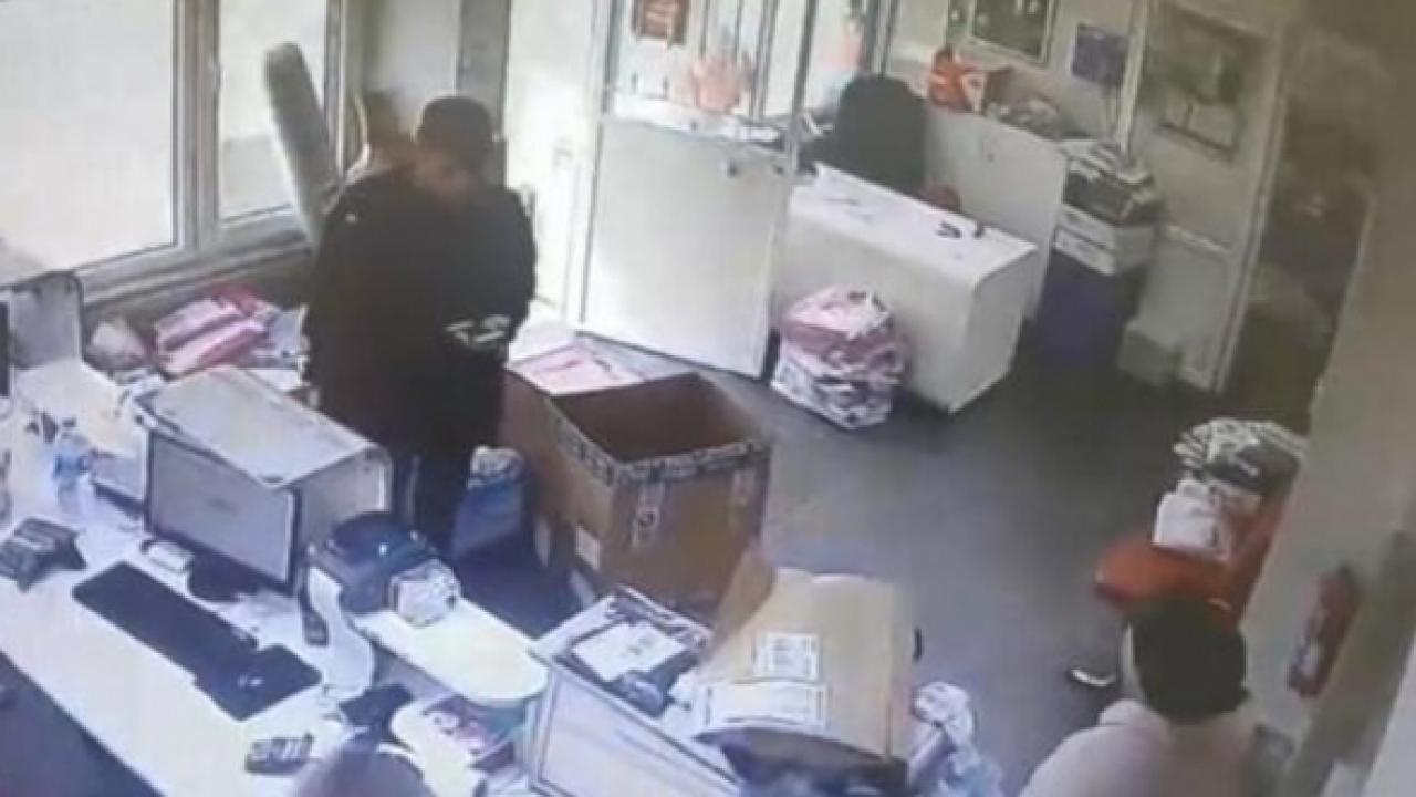 Öte yandan hırsızların kargo şirketinden bilgisayarı çaldıkları anlar güvenlik kameralarına yansıdı.DHA