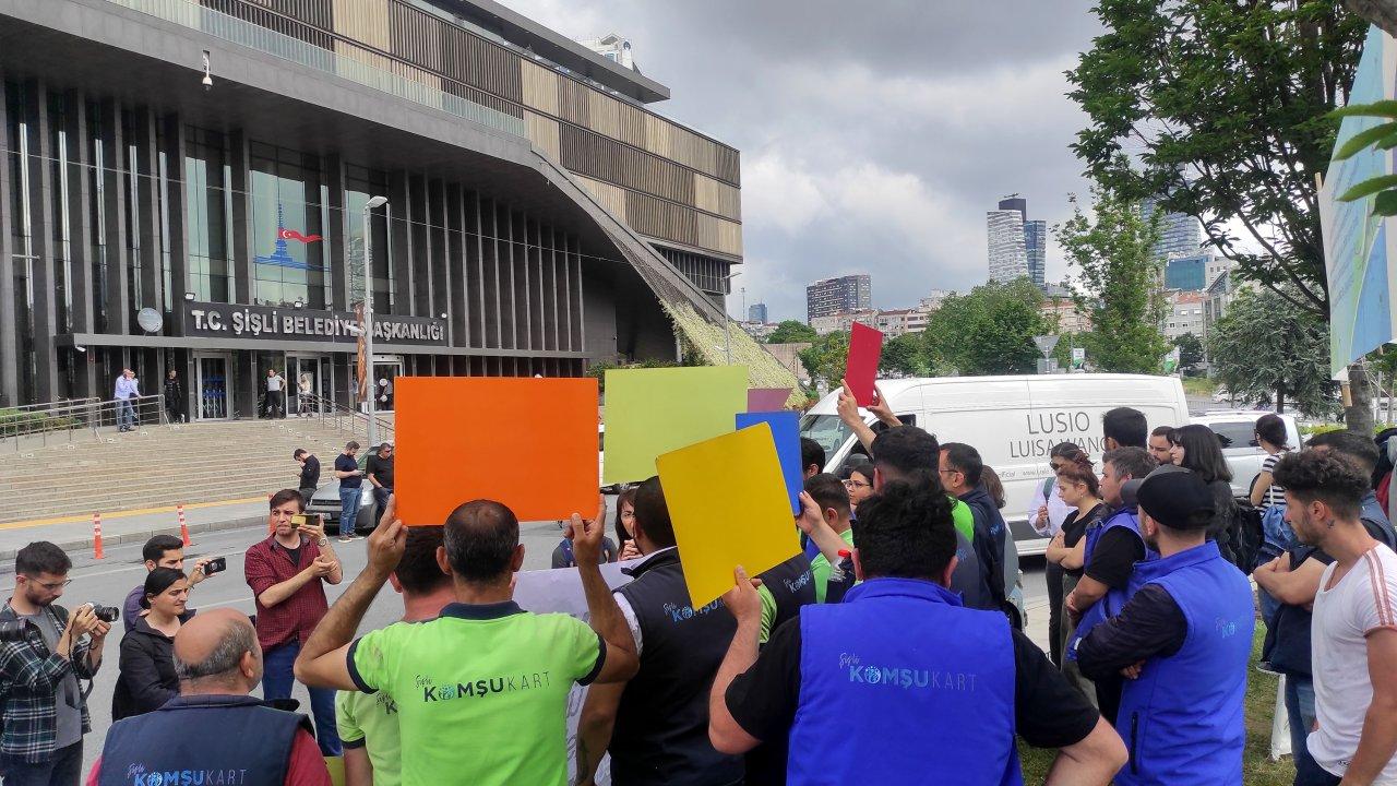 İşçiler, geriye dönük kıdem tazminatı, bayram ikramiyesi, mesai ücretleri gibi haklarının yasal faiziyle verilmesini, Komşu Kart işçilerinin Şişli Belediyesi iştiraki olan Kent Yol A.Ş. bünyesine alınmasını istiyor.