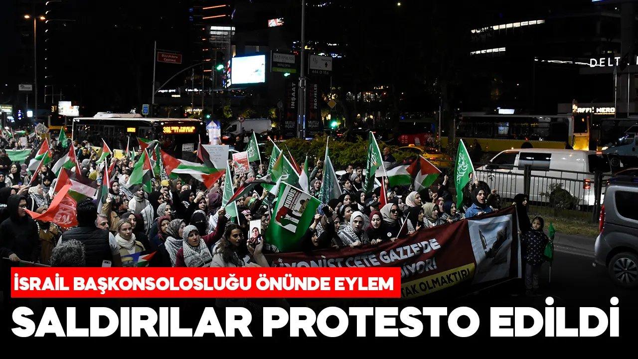 İsrail ordusunun, Refah kentindeki yerlerinden edilmiş Filistinlilerin kaldığı çadır kente yönelik saldırısı, İsrail İstanbul Başkonsolosluğu önünde protesto edildi. Konsolosluğa havai fişeklerin atıldığı eylem sırasında bazı protestocular arasında arbede yaşandı.