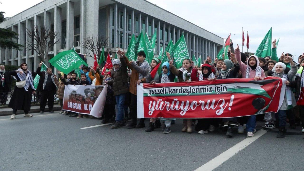Saraçhane Parkı'nda toplanan grup sloganlar atarak Beyazıt Meydanı'na kadar yürüdü. Yürüyüşe katılan çocuklar, "Gazzeli kardeşlerimiz için yürüyoruz" pankartı açtı. Beyazıt Meydanı'ndan Kuran-ı Kerim tilaveti ile başlayan programda, Gazze Dayanışma Platformu adına konuşan Necmettin Irmak, "Kardeşler, 4 aydır Gazze'de direniş devam ediyor. Katliam devam ediyor. Ve biz onlarla beraber ibatımıza devam ediyoruz. Kardeşlerimiz direniyor, sabrediyorlar. Allah'ın zaferine bir adım daha sabır ve sonunda zafer elde edeceğiz" dedi.