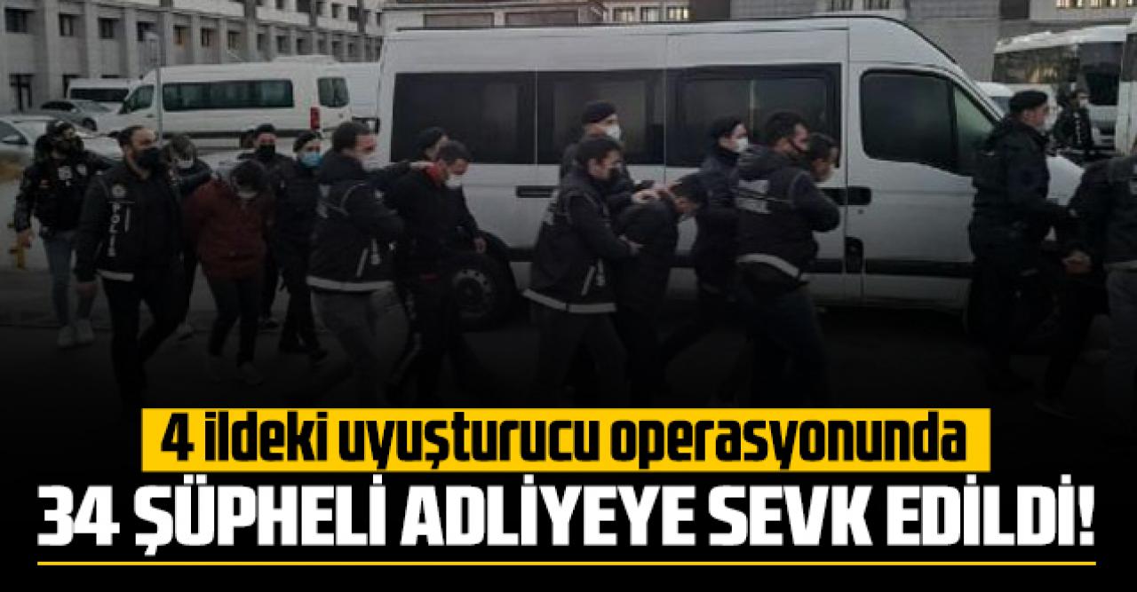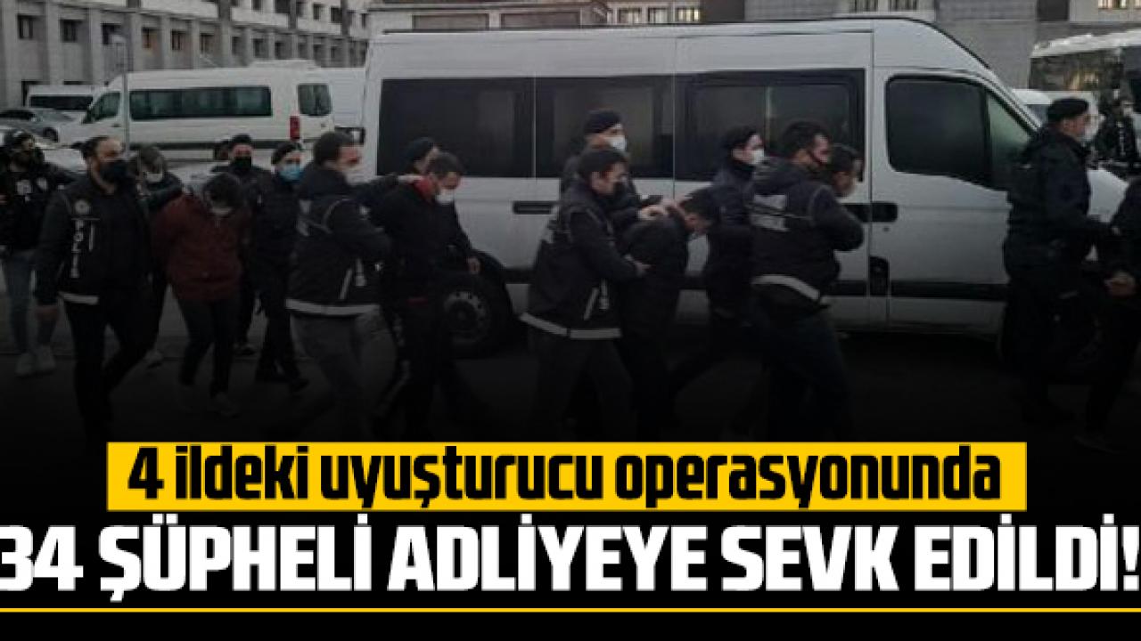 İstanbul merkezli 4 ilde uyuşturucu tacirlerine yönelik olarak düzenlenen operasyonda 34 şüpheli gözaltına alınmıştı. Emniyetteki sorguları tamamlanan şüpheliler buradan adliyeye sevk edildi.