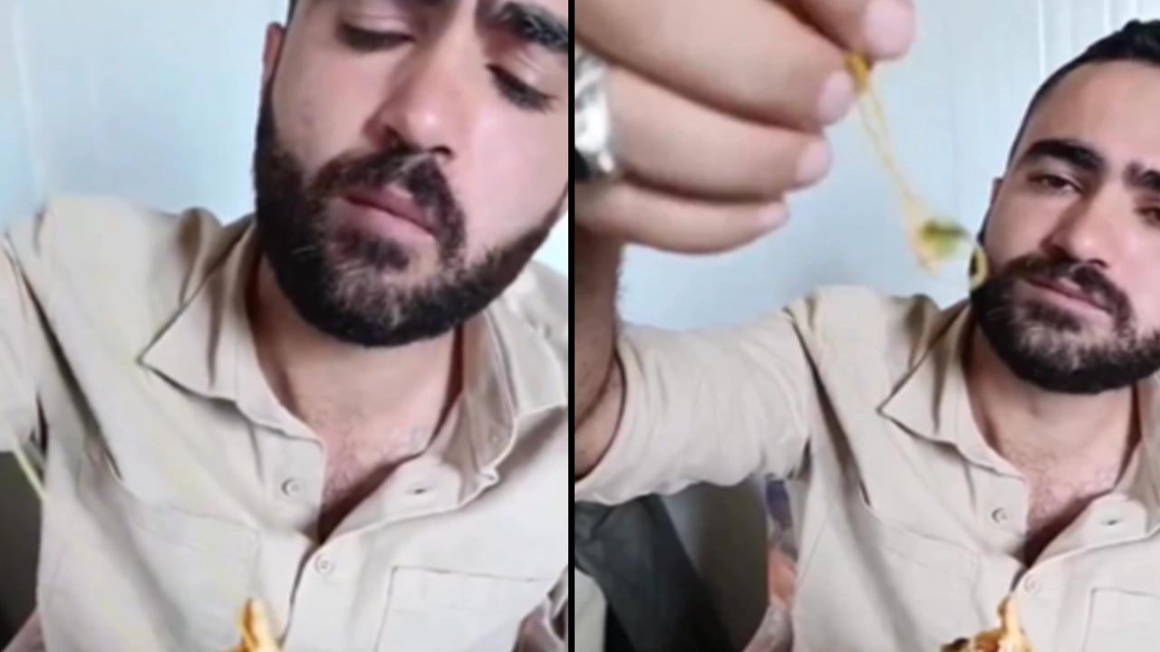 Yemeklerinin teslim edilmesinin ardından dönerini yemeye başlayan iki şahıstan biri, yemeye devam ettiği esnada beklenmedik bir durumla karşılaştı.