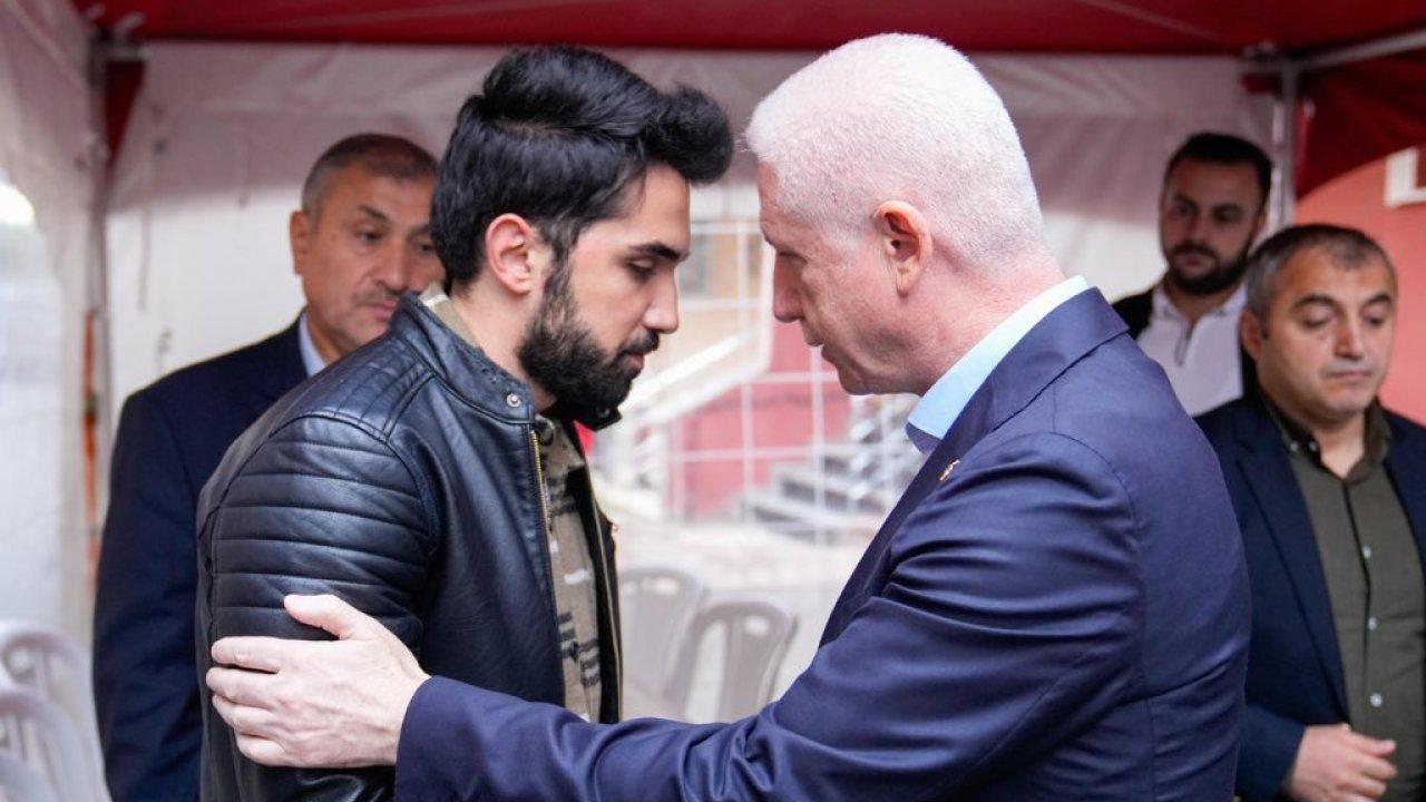 Şehit Yılmaz’ın evinin önünde kurulan taziye çadırına konuk olan Vali Gül, duaların okunmasının ardından şehit polisin acılı eşi ve babasına taziye dileklerini iletti.