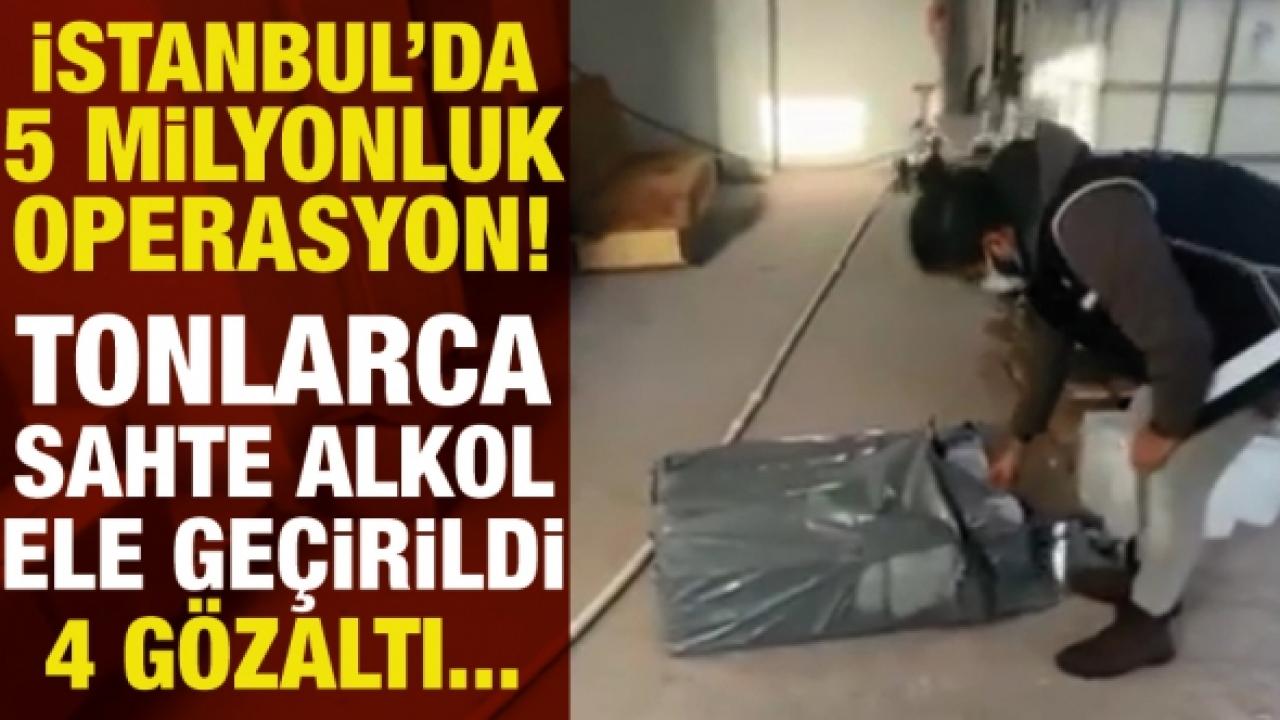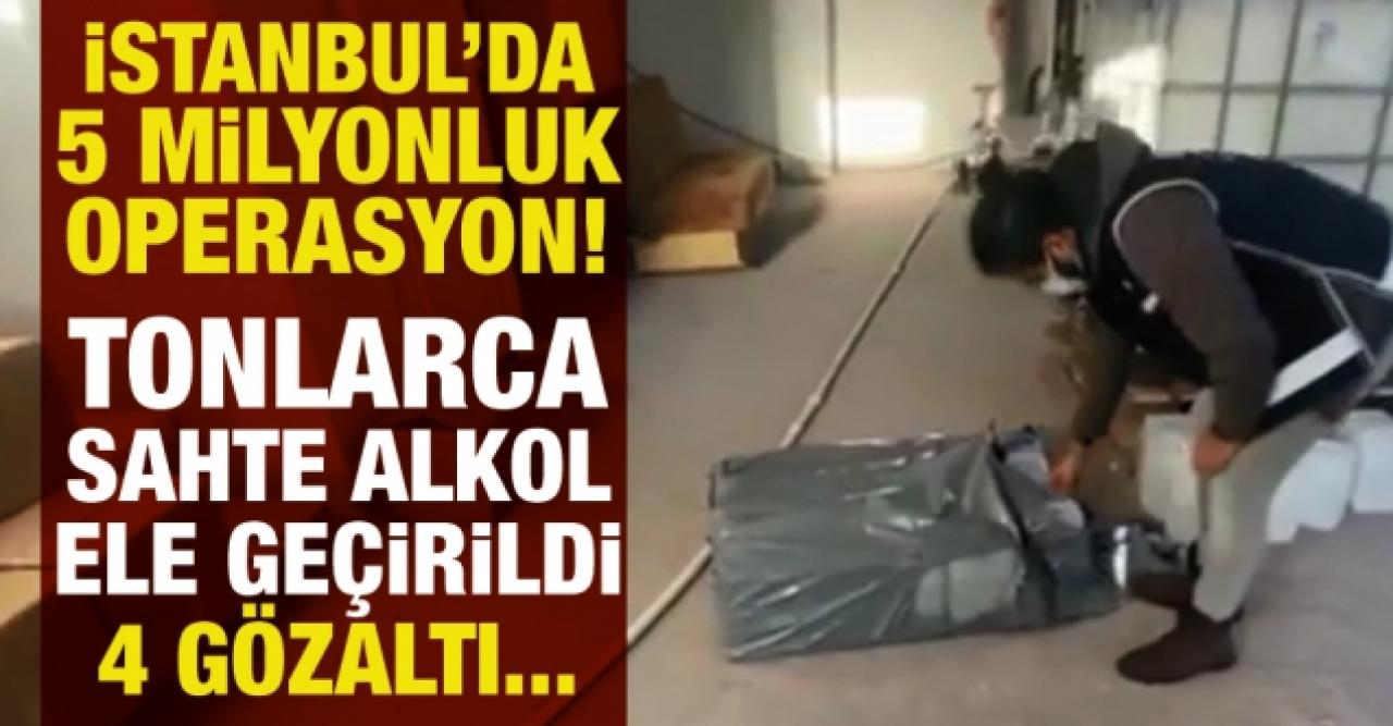 Operasyon kapsamında 4 şüpheli gözaltına altına alınırken, piyasa değeri 5 milyon 500 lira olduğu değerlendirilen tonlarca sahte alkol ele geçirildi. Operasyon anı kameralara yansıdı.