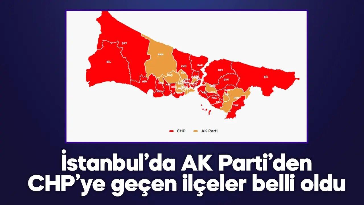 İstanbul'da büyük oy kaybı yaşayan AK Parti, kalesi olarak gördüğü 9 ilçeyi rakibi Cumhuriyet Halk Partisi'ne kaptırdı. CHP İstanbul'da 26 ilçede seçimi kazanırken, AK Parti'de bu sayı ise 13'e düştü. Açılan sandıkların oy oranındaki son gelişmelere göre İstanbul'da AK Parti'den CHP'ye geçen ilçeler ise şöyle; Bayrampaşa, Beyoğlu, Çatalca, Çekmeköy, Gaziosmanpaşa, Eyüpsultan, Üsküdar, Sancaktepe, Tuzla ilçeleri oldu.