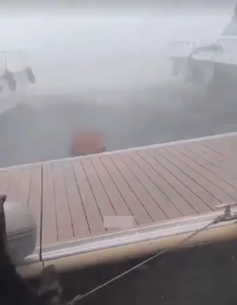 Yat Limanı'nda kaydedilen görüntülerde kuvvetli rüzgar teknelerin olduğu noktaya konteynerleri savurdu.