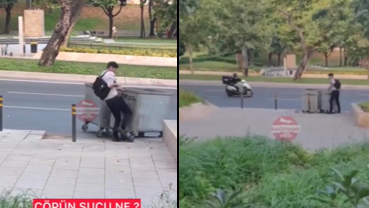 Olay İstanbul Beşiktaş Barboros Bulvarı’nda meydana geldi. İddiaya göre bir genç henüz belirlenemeyen bir sebepten yaşadığı bir olayın hıncını yol kenarında bulunan çöp konteynırından çıkardı.