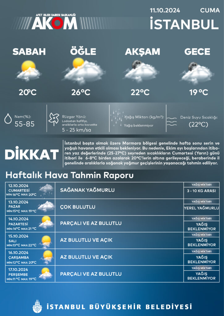Akom'dan alınan günlük ve haftalık hava durumu bilgileri ise şu şekilde: