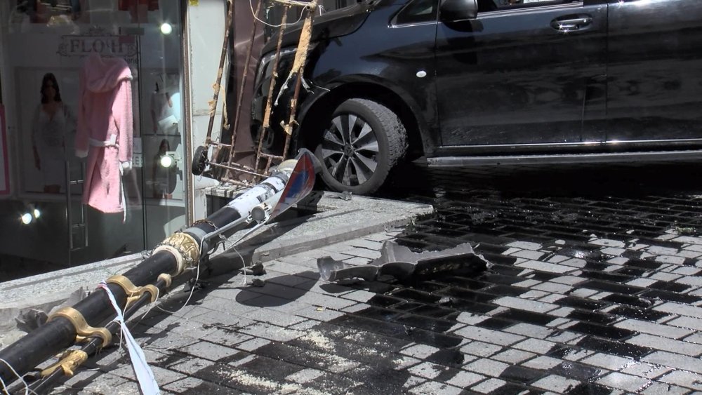 Esnaf Shir Ahmedov, "Burada kaldırımda duruyorduk. Araba direğe çarptı. İnsanlar kaçışmaya başladı. Direk de düştü. Kaldırımda da 3-4 kişi vardı. Direği de devirdi. Allah'tan kimseye bir şey olmadı" dedi.