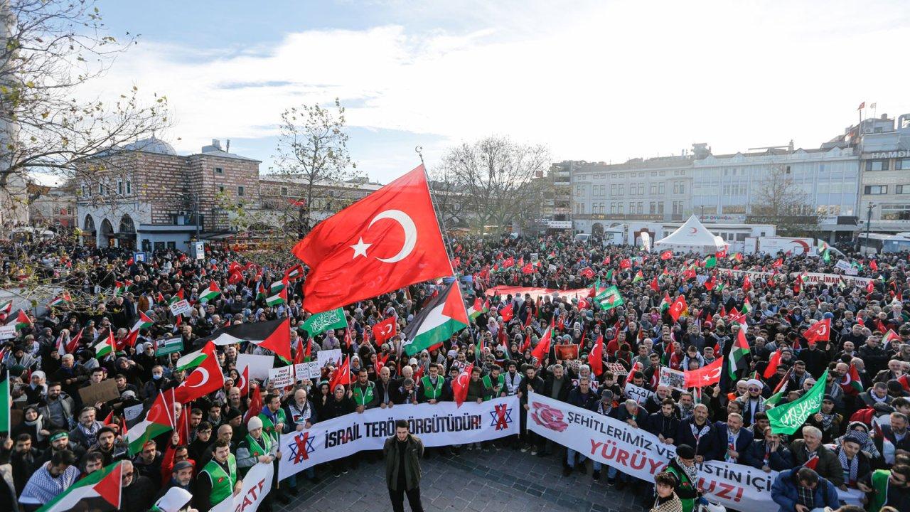 Binlerce kişi Fındıklı Tramvay Durağından Eminönü Meydanı'na kadar yürüdü. Katılımcılar yürüyüş boyunca ellerinde Türkiye ve Filistin bayrakları ile İsrail'e tepki gösteren dövizler taşıdı. Yürüyüşte sık sık, "Şehitler Ölmez Vatan Bölünmez, Kahrolsun PKK, Katil İsrail, İşbirlikçi ABD, Filistin Halkı Yalnız Değildir" şeklinde sloganlar atıldı.