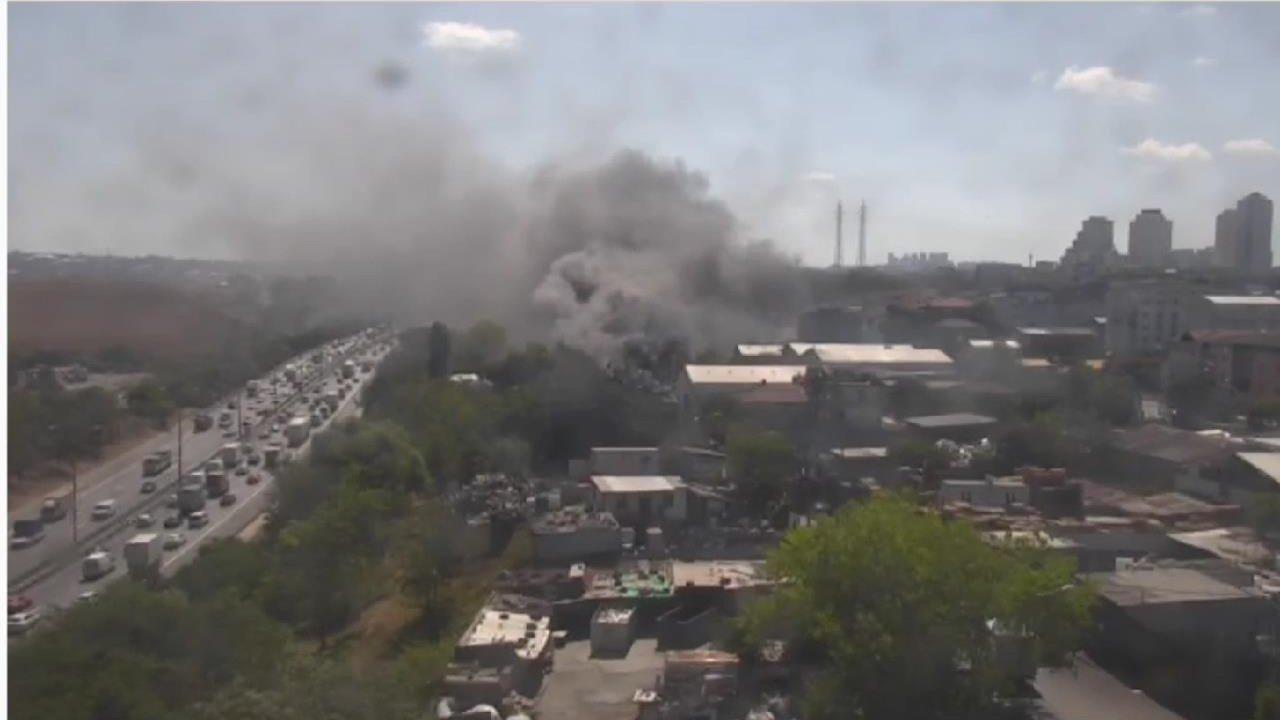 Tesisin hurdalık depolama alanında çıkan yangın kısa sürede büyüdü. Gökyüzüne yükselen dumanlar ilçenin birçok noktasından görüldü.