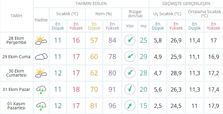 Meteoroloji Genel Müdürlüğü'nün tahminlerine göre pazar ve pazartesi günlerinde yağmur beklentisi var. Sıcaklıklar ise 11 ila 18 arasında değişecek.