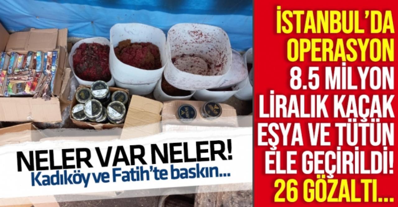 İstanbul'da kaçak yollarla sokulduğu tespit edilen ve piyasa değeri yaklaşık 8 buçuk milyon lira olduğu tahmin edilen tütün ve elektronik eşya ele geçirildi. Operasyonda 26 kişi gözaltına alındı.