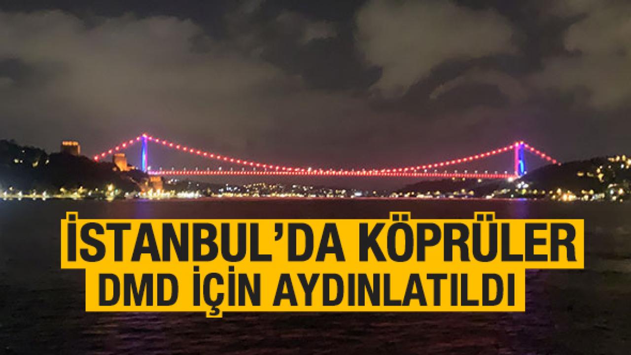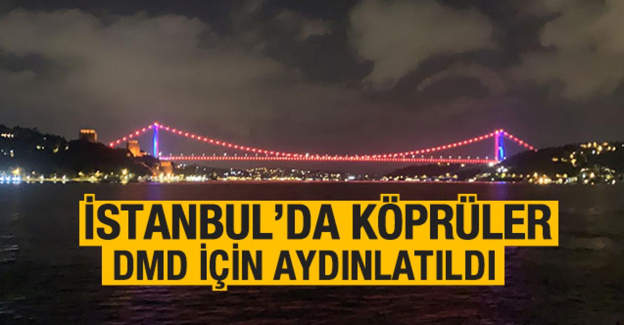 İstanbul'un simgelerinden olan Fatih Sultan Mehmet (FSM) ve Yavuz Sultan Selim (YSS) köprüleri dün akşam saatlerinden itibaren DMD Farkındalık Günü nedeniyle mavi ve kırmızı renklere büründü.