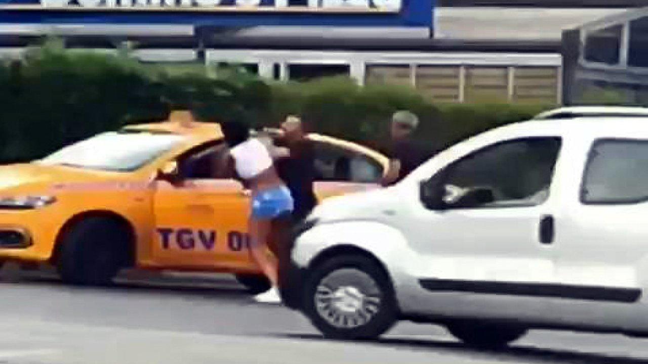 Avcılar'da taksiye binen yabancı uyruklu bir kadın iddiaya göre, taksi şoförüne parasının olmadığını söyledi. Taksi şoförü tarafından araçtan indirilen müşteri, bağırmaya başladı. Kadın, kendisini sakinleştirmek isteyen başka bir taksiciye tokat attı. O anlar kameraya yansıdı.