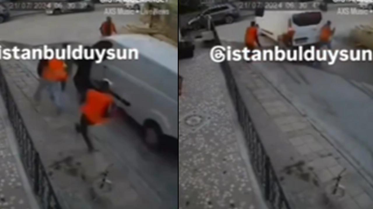 O anlar ise iş yerinin güvenlik kamerasına kaydedildi. Görüntülerde işçilerin minibüsle kaçmaya çalıştıkları ve peşlerinden işçilerin koştuğu görülüyor.